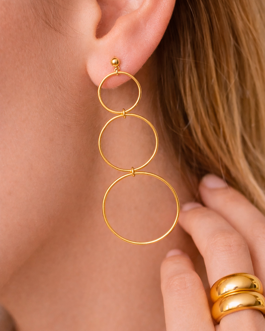 Triple Hoop Dangle Studs Gold