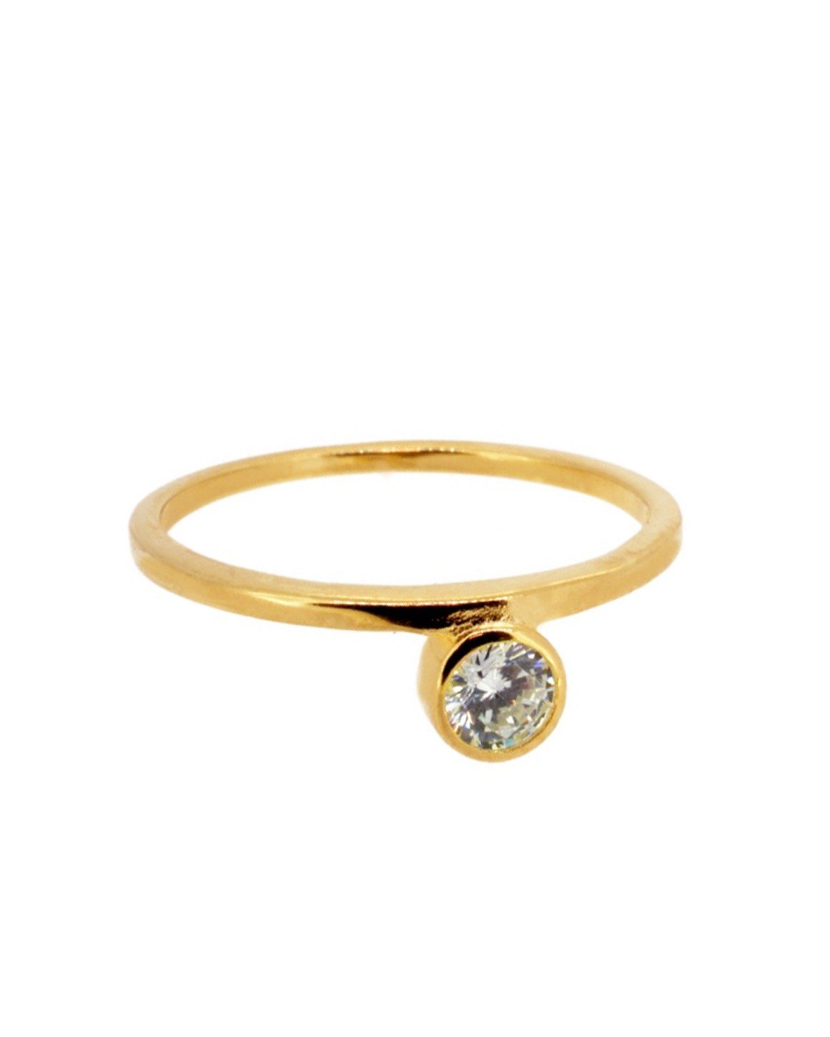Dieser Ring mit einem brillanten Zirkonia in der Mitte besteht aus 18 Karat vergoldetem 925er Sterlingsilber und ist das perfekte Accessoire, um Ihrem Look einen Hauch von Licht und Raffinesse zu verleihen. Sein minimalistisches Design macht ihn zum idealen Schmuckstück, um ihn mit einem anderen Ring am selben Finger zu kombinieren und so einen modernen und eleganten Stil zu kreieren. Außerdem ist es nickelfrei und somit sicher für empfindliche Haut.