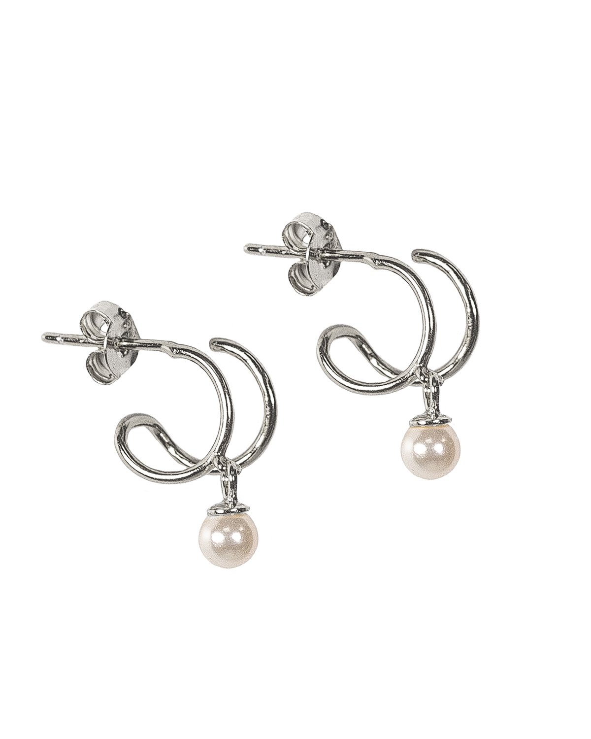 Kinsley Silver sind Doppelcreolen mit einer hängenden Perle aus 925er Sterlingsilber. Da es sich um eine Doppelcreole handelt, entsteht ein doppelter Piercingeffekt.
