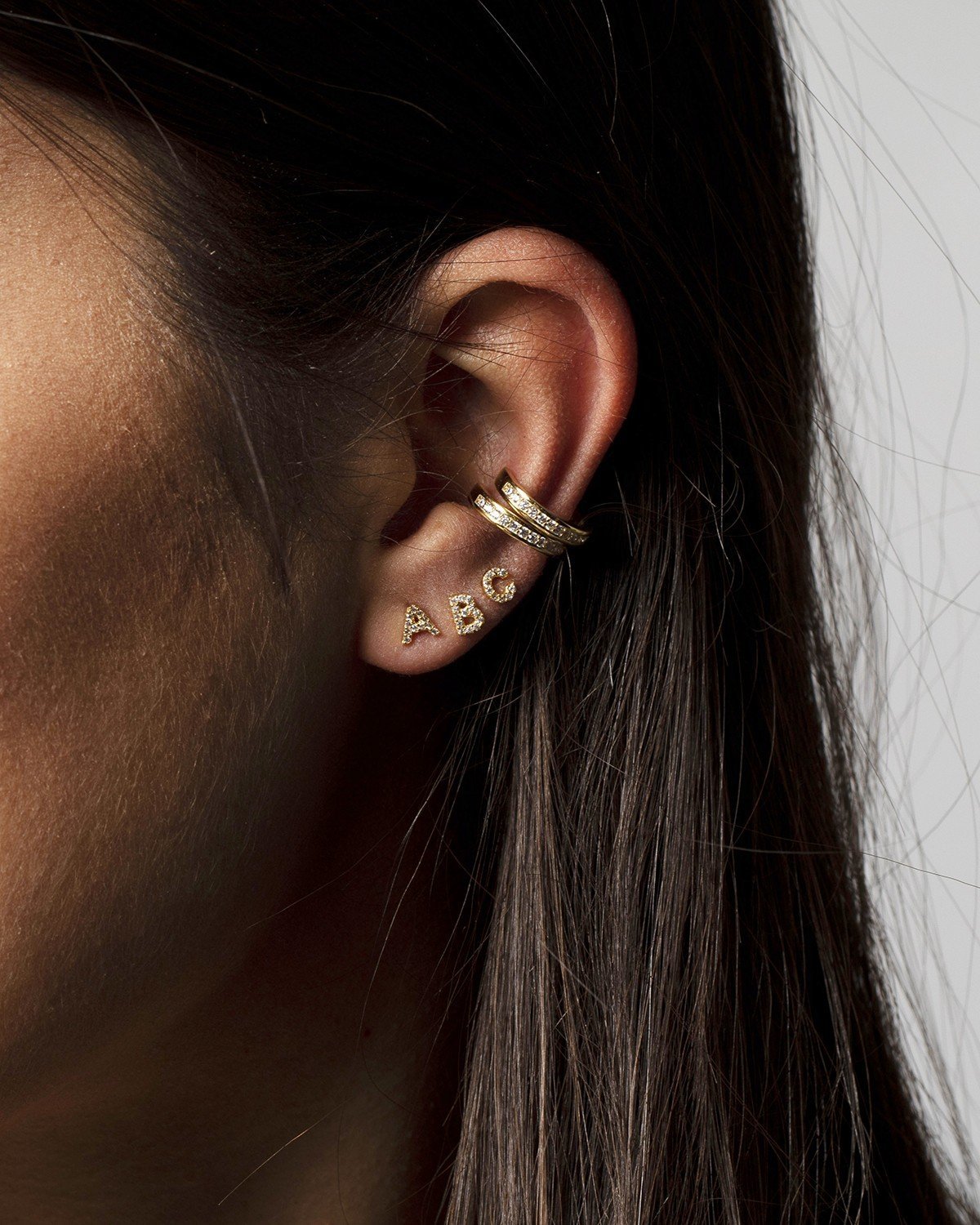 The Initial Stud Earring with Zirconias adds a brilliant and personal touch to your everyday style. Crafted from 18 carat gold plated 925 sterling silver and adorned with sparkling zirconias, this earring is perfect to wear alone or paired with other initials for a fun, customized look.