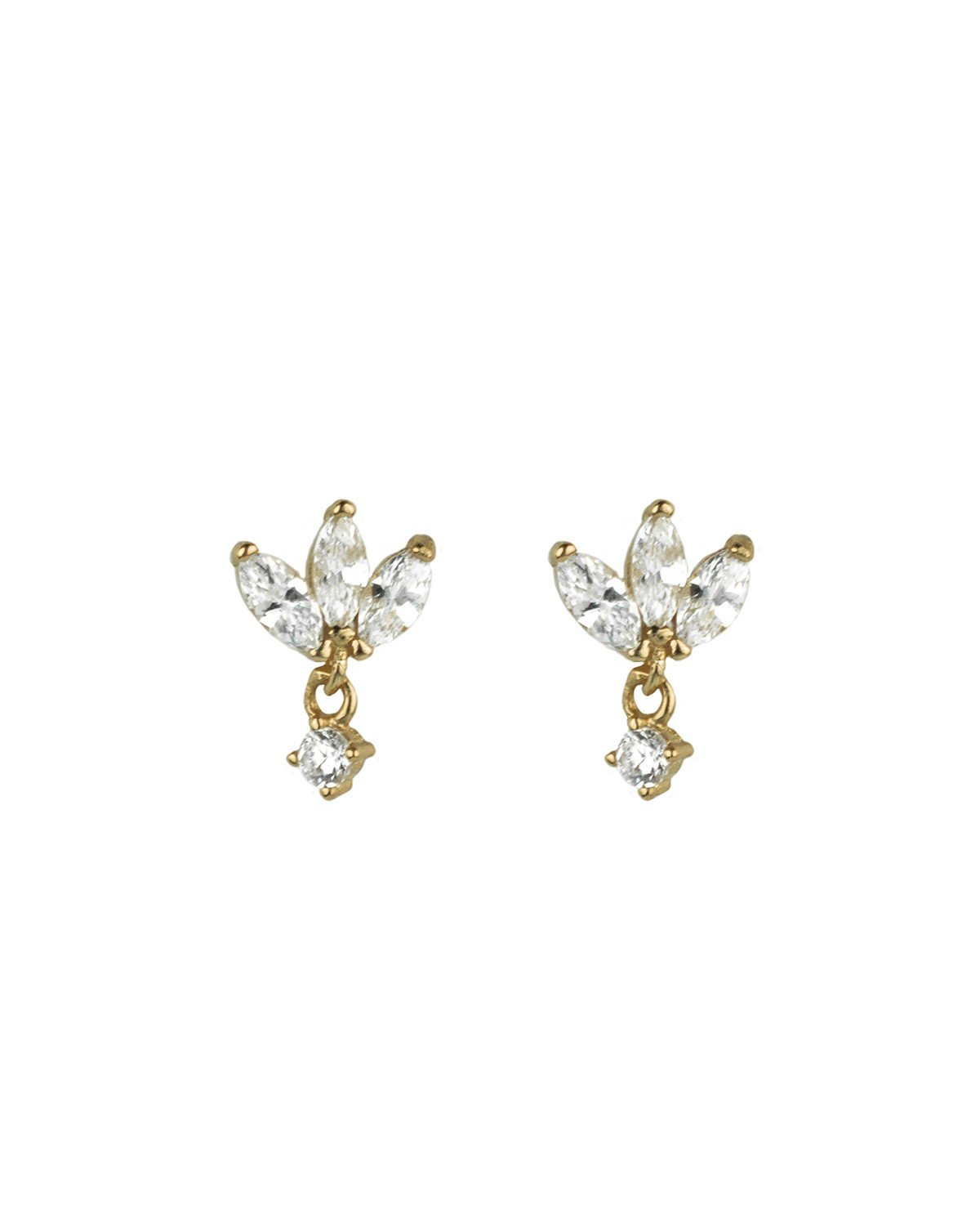 18k gold plated 925 Sterling Silver Earrings with Three Zirconia and a Small Pendant