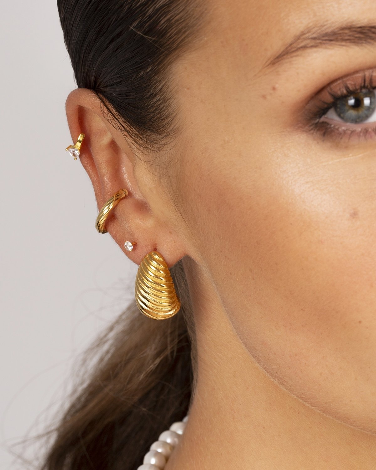 Vintage style hoop earrings made of 18 carat gold plated (3 micron) stainless steel. These lightweight earrings are perfect to make a statement. Stainless steel is an alloy of steel and chrome. It combines the strength, durability and functionality of steel with brightness, low maintenance and chrome corrosion resistance. The color is still perfect even if you use your pieces at sea.