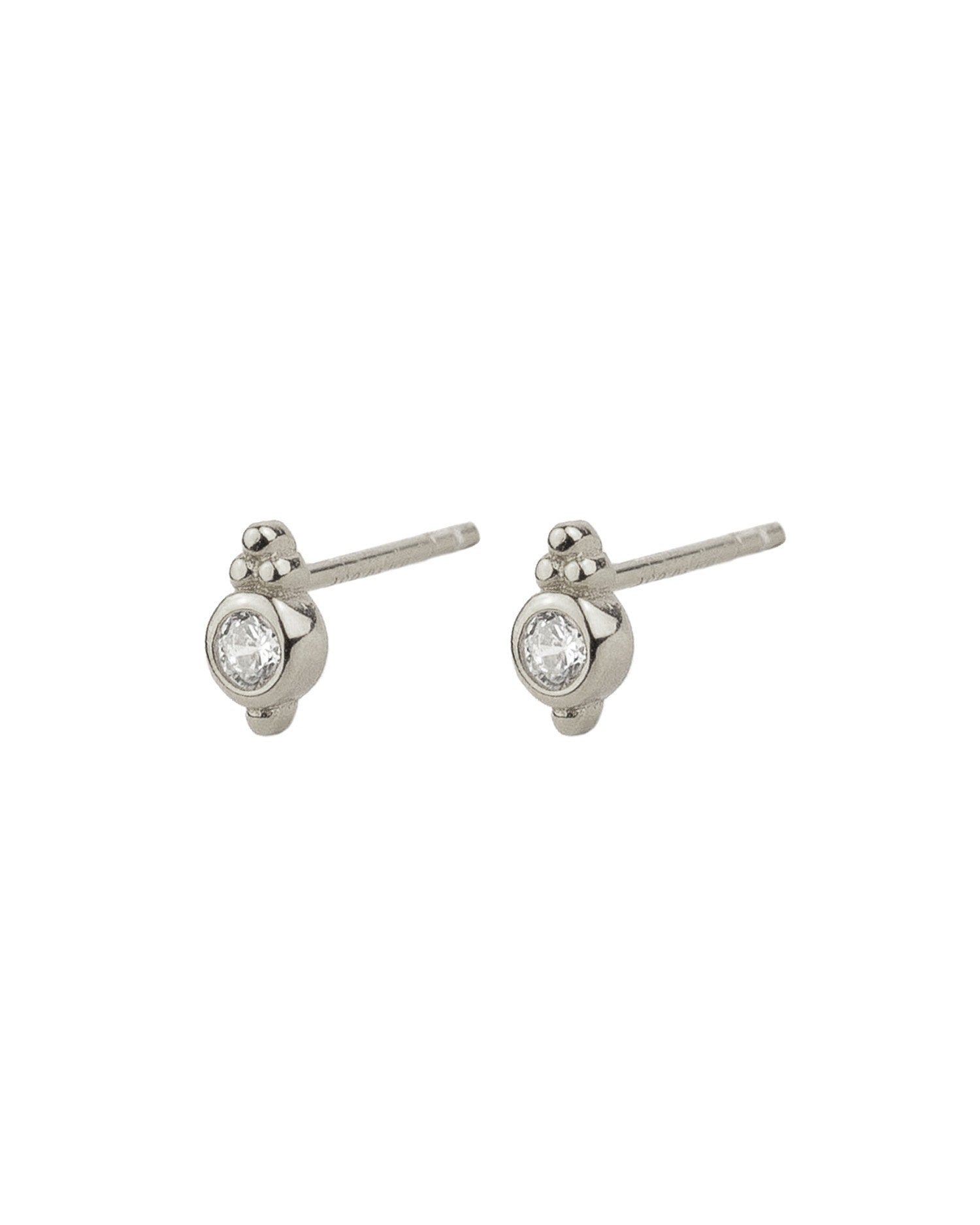 These small earrings feature a brilliant zirconia and tiny beads made of 925 sterling silver. Due to their small size, they can be worn as regular earrings or as a piercing for the tragus, cartilage, etc. Their simple and elegant design makes them easy to pair with any look. Perfect for those seeking a subtle yet sparkling touch for their ears.