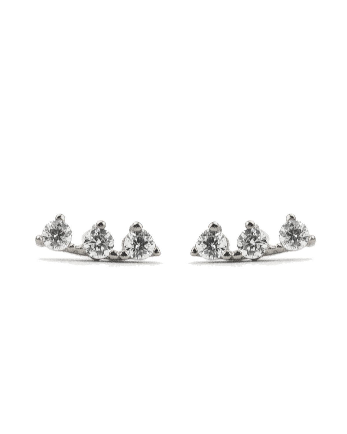 These earrings feature three sparkling zirconias and a convenient press-back closure. Made from 925 sterling silver, they are perfect for wearing alone or pairing with other earrings in the same ear for a delicate and sophisticated look.