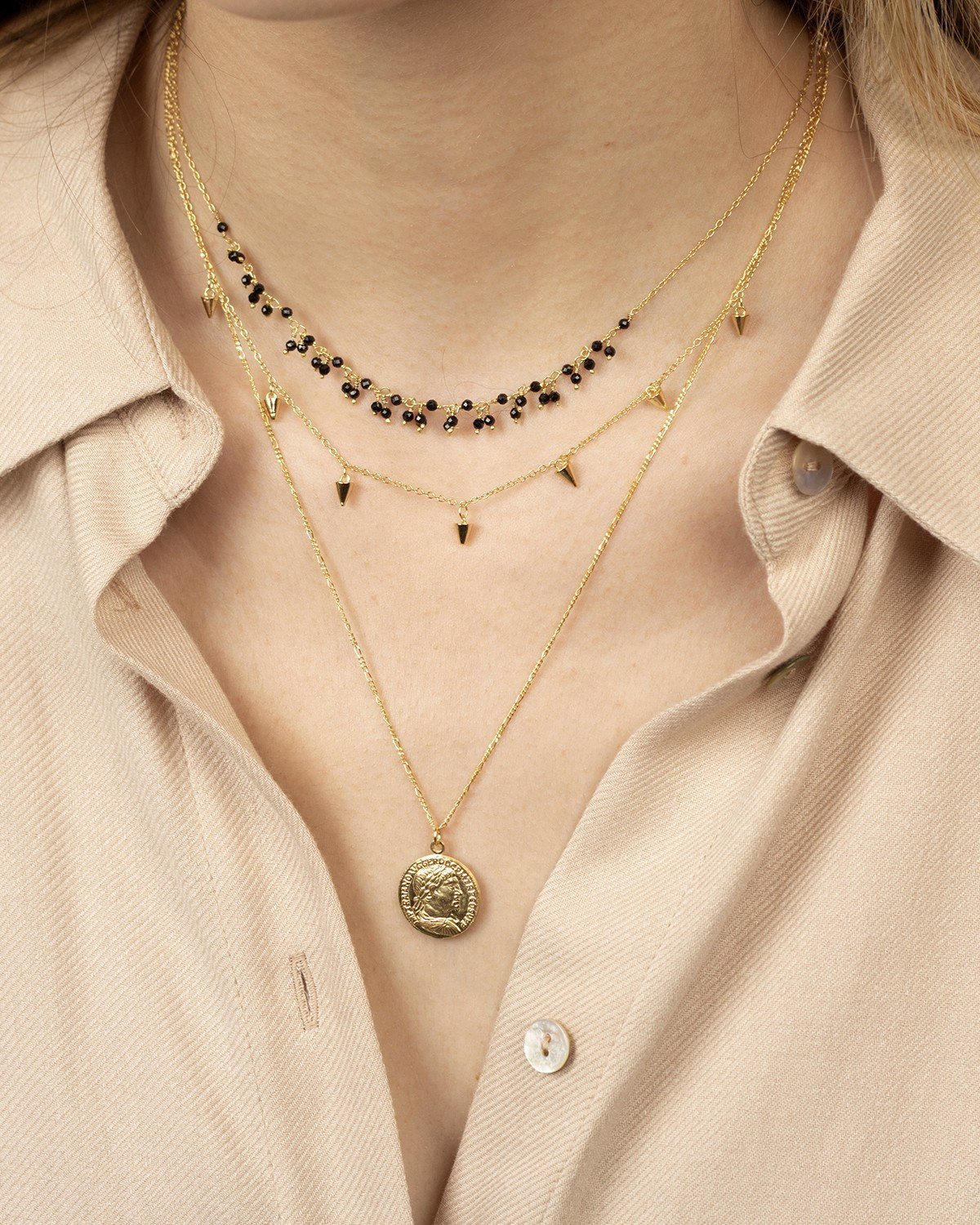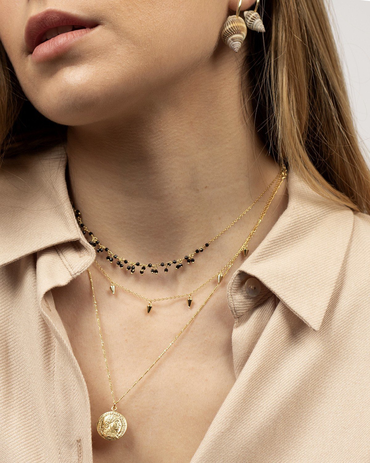 This on-trend necklace pairs the elegance of 18k gold plated 925 sterling silver with the depth of natural black onyx stones. Its versatile design, featuring an adjustable 15"-17" (38-43 cm) chain, makes it ideal for daily wear and layered looks.