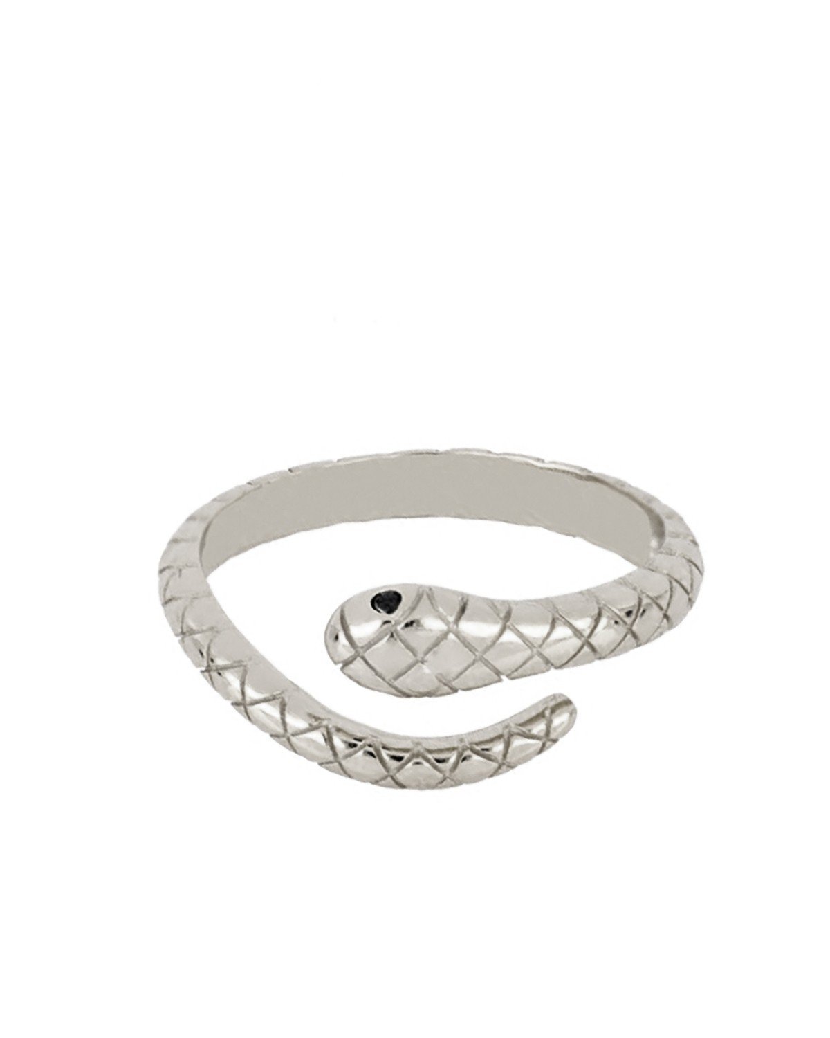 This open spiral ring features a detailed snake design that wraps elegantly around the finger, complemented by two black cubic zirconias for a touch of mystery and sophistication. Made from sterling silver 925, it’s the perfect piece for those seeking a bold and distinctive accessory.