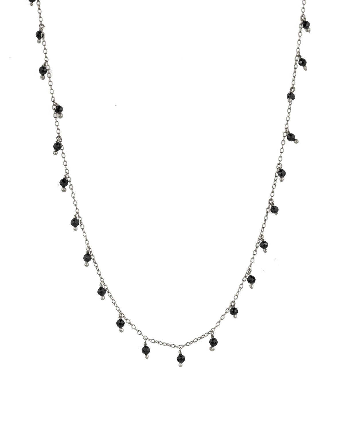 This refined choker in 925 sterling silver features natural black spinel stones, offering a striking contrast between the metal's shine and the stones' depth. The adjustable 13.8" (35cm) + 2.8" (7cm) chain provides versatile styling options.