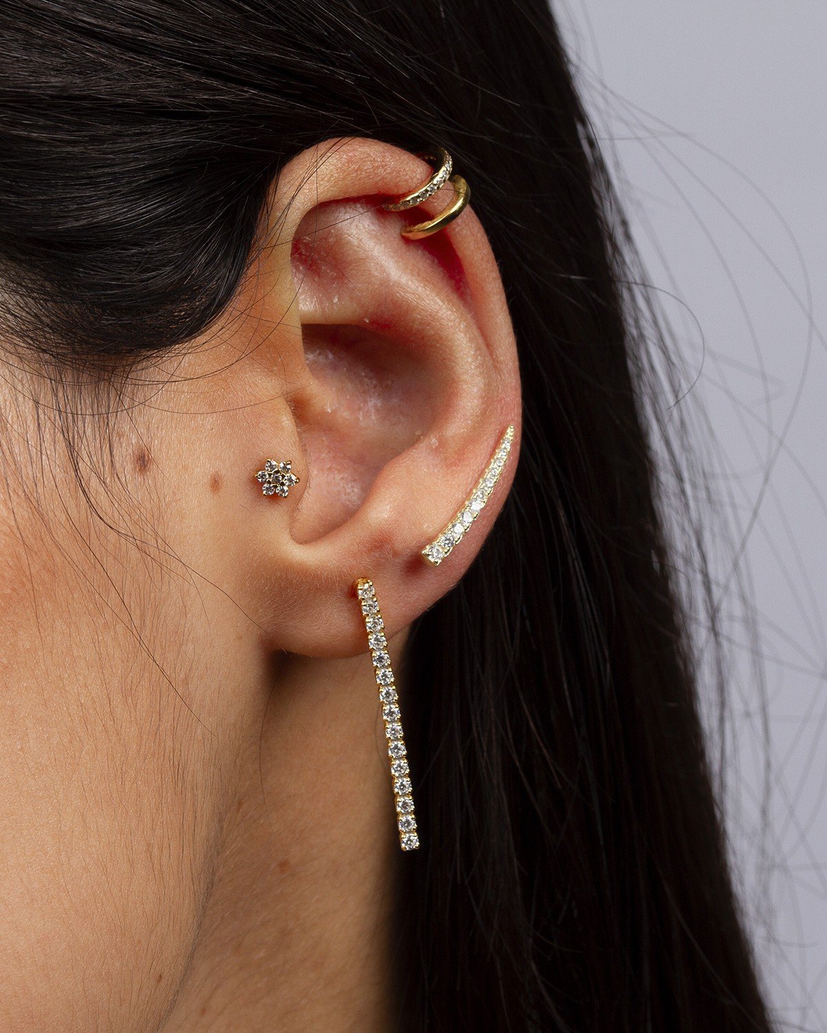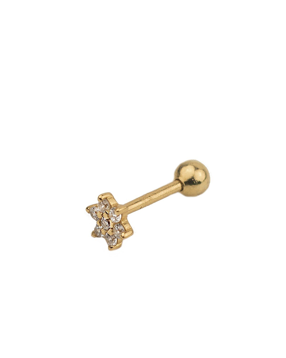 Tiny stud earring with screw back and flower shaped with cubic zirconia gemstones made of 18k gold plated 925 sterling silver. This tiny piercing is very comfy to wear as cartilage, tragus or helix piercing.