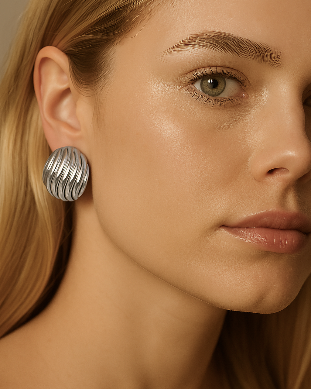 Elevate your look with these vintage-inspired oval earrings featuring graceful, wavy contours. Crafted from hypoallergenic, nickel-free stainless steel, they are waterproof and polished by hand to achieve an exceptional shine. A statement piece perfect for any occasion, combining timeless elegance with modern durability.