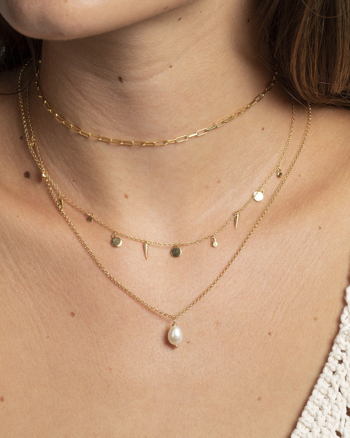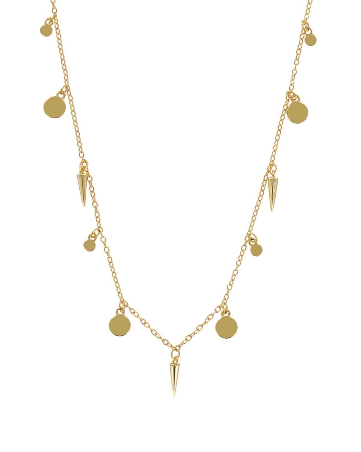 Multi-Charm Necklace with Round Discs & Spikes - Gold