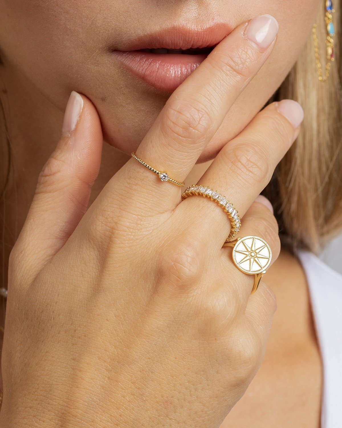 This braided solitaire ring features a cubic zirconia in the center, made from 18k gold plated sterling silver 925. Its braided design makes it the perfect piece to wear on its own or combine with other rings to create a unique and personalized look. Ideal for daily wear or special occasions.