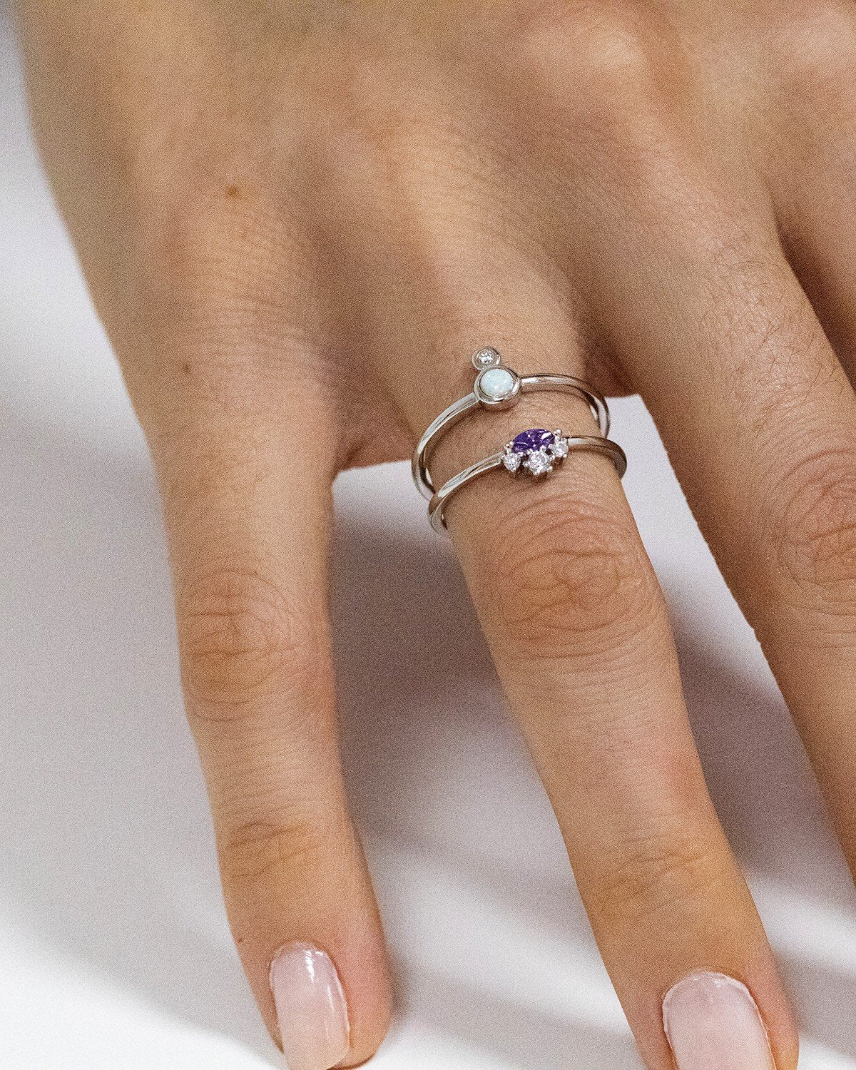 This elegant ring features a natural opal paired with a brilliant cubic zirconia, creating a design that stands out for its beauty and simplicity. Crafted in sterling silver 925, it's a versatile piece, perfect for wearing alone or stacking with other rings to create a unique look.