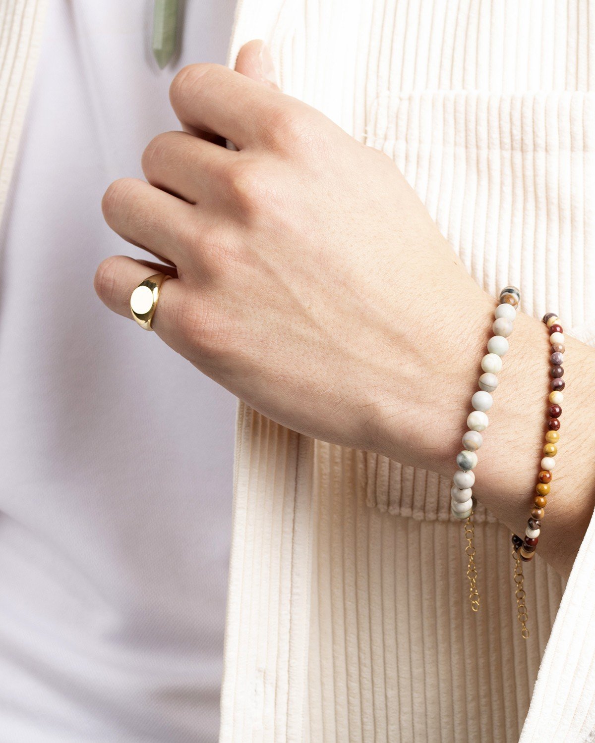 The vast majority of our jewels are made of 925 Sterling Silver and covered with a layer of 18k gold plating. In some cases, the products are made of stainless steel and covered in a resiliant layer of gold. However, no matter the base, all our jewels are carefully made, high-quality products with a fine jewelry finish.