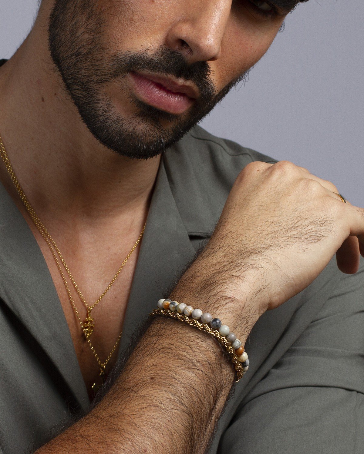 925 Silver pieces with 18 karat gold plating are, by default, more delicate and may lose the color of gold over time. The plating may fade for different reasons: chemicals used for skin care, the level of perspiration or the natural ph of the skin. We recommend not to wear them under water and to avoid perfumes and creams directly on the jewelry. On the other hand, Stainless steel combines the strength, durability and functionality of steel with brightness, low maintenance and chrome corrosion resistance. The color is still perfect even if you use your pieces at sea.