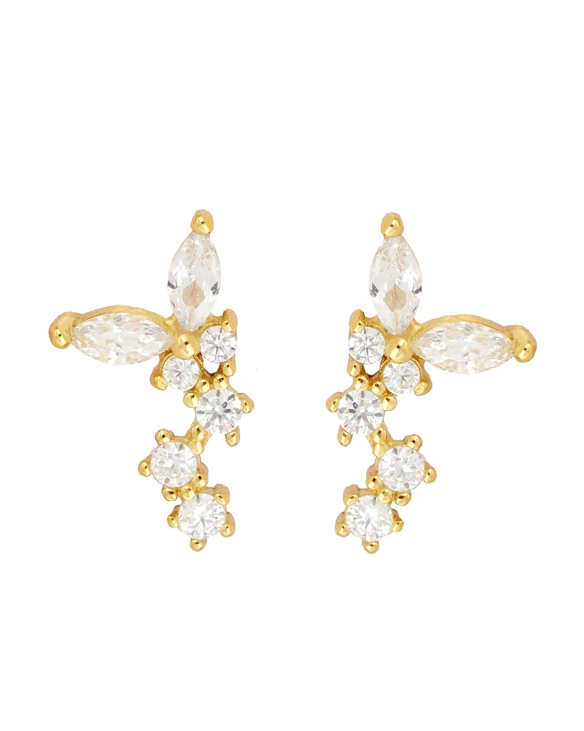 Dainty Stud earrings with marquise and rounded cubic zirconia gemstones made of 18 carat gold plated 925 sterling silver.