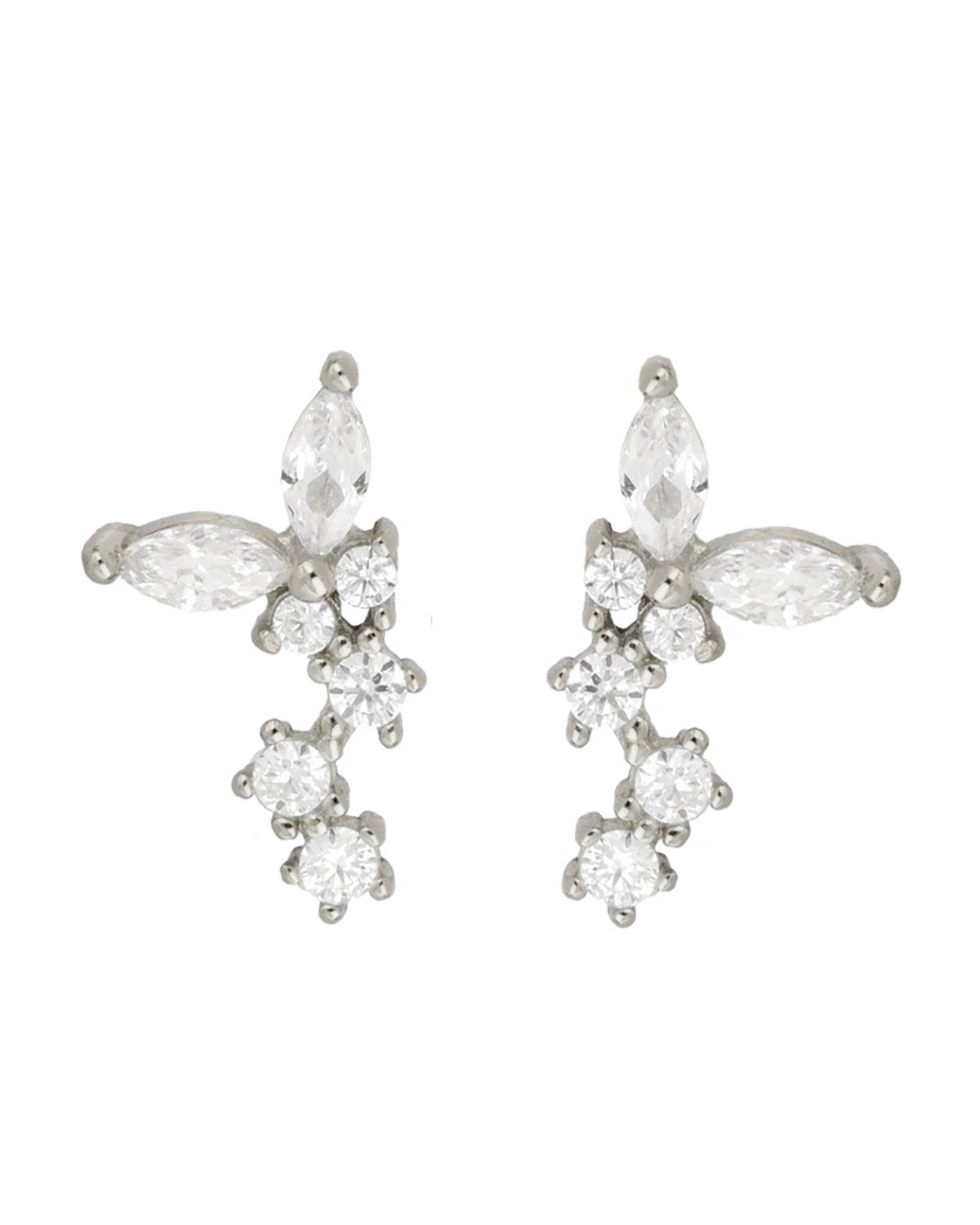 Dainty Stud earrings with marquise and rounded cubic zirconia gemstones made of 925 sterling silver.