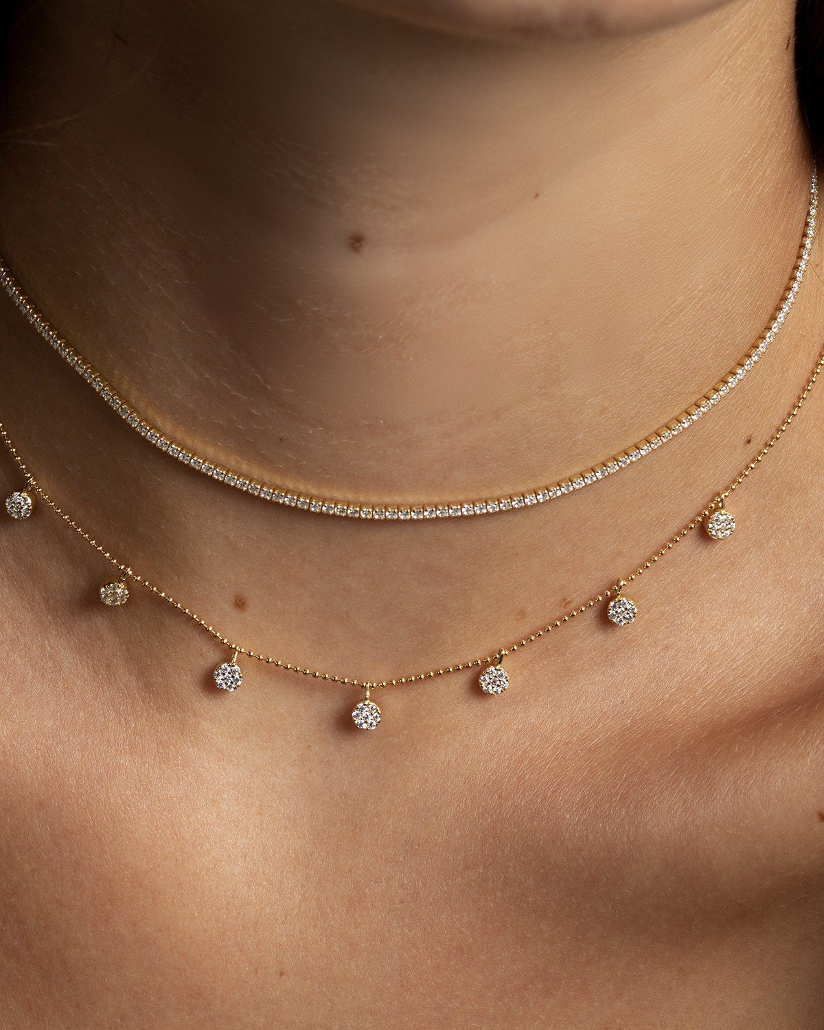 This refined rivière choker in 18k gold plated 925 sterling silver features a continuous line of sparkling zirconias for sophisticated radiance. With an adjustable 13"-15.7" (33-40 cm) fit and ultra-slim 1.75mm profile, it's the perfect elevating accessory.
