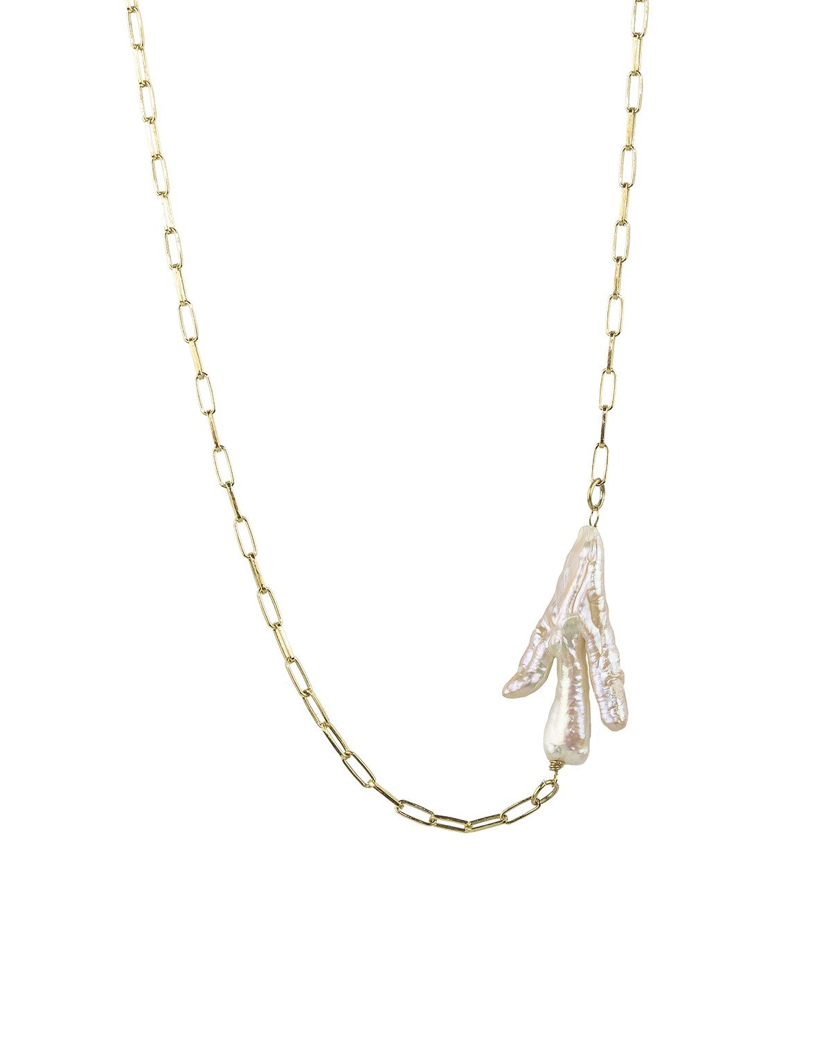 Paperclip Chain Necklace with Cultured Pearl - Gold