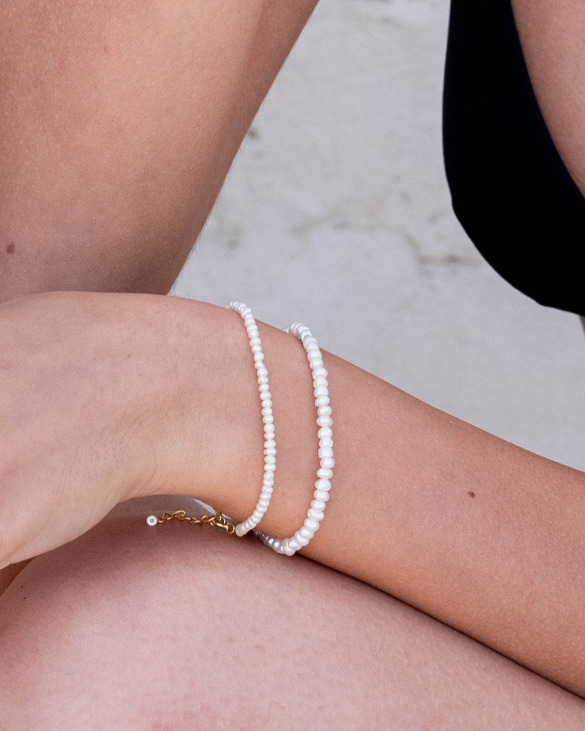This adjustable bracelet (6"+1.2") combines cultured natural pearls with 18k gold plated sterling silver 925 accents, effortlessly upgrading casual ensembles.