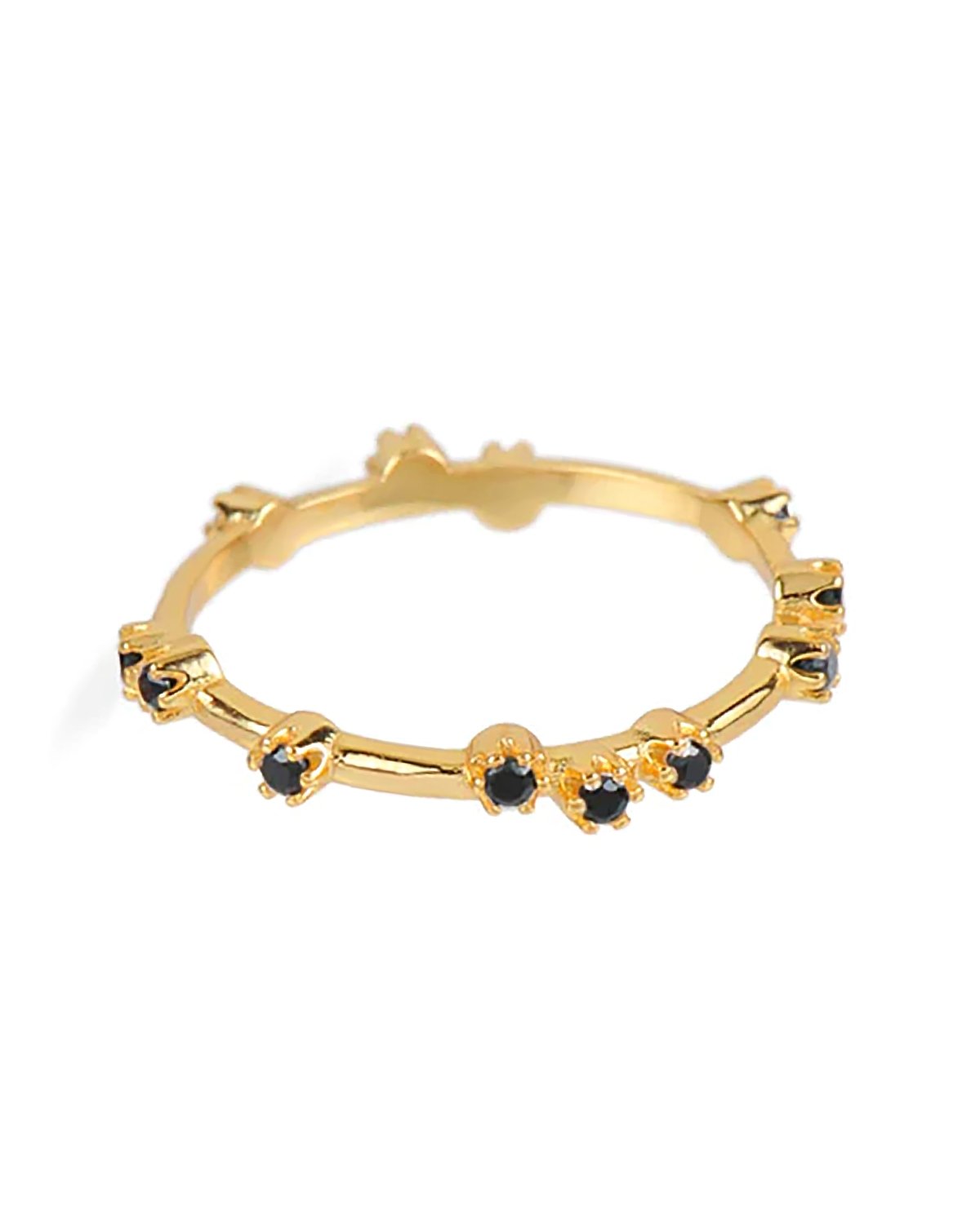 This ring with black zirconias is one of our best-sellers, now featuring a new design. Made from 18k gold plated sterling silver 925, it’s perfect for stacking with other rings or wearing on its own as a unique piece. Its sparkle and sophisticated design make it the ideal complement for any occasion.