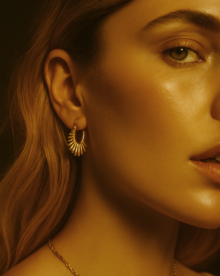 Turn heads with these bold yet refined hoop earrings featuring subtle spikes and a luxurious 18K gold-plated finish. Crafted from hypoallergenic, nickel-free stainless steel, these earrings offer durability, comfort, and a stunning shine thanks to their hand-polished surface. Waterproof and eye-catching, they’re perfect for elevating your everyday or night-out look.