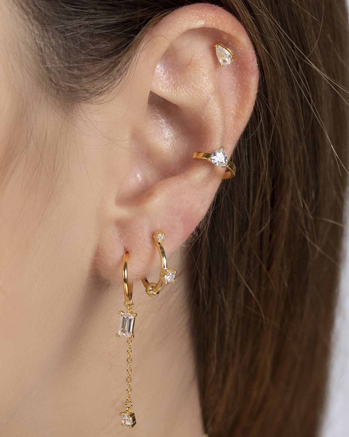 Tear-shaped cubic zirconia gemstone piercing with a ball screw back made of 18 carat gold plated 925 sterling silver.