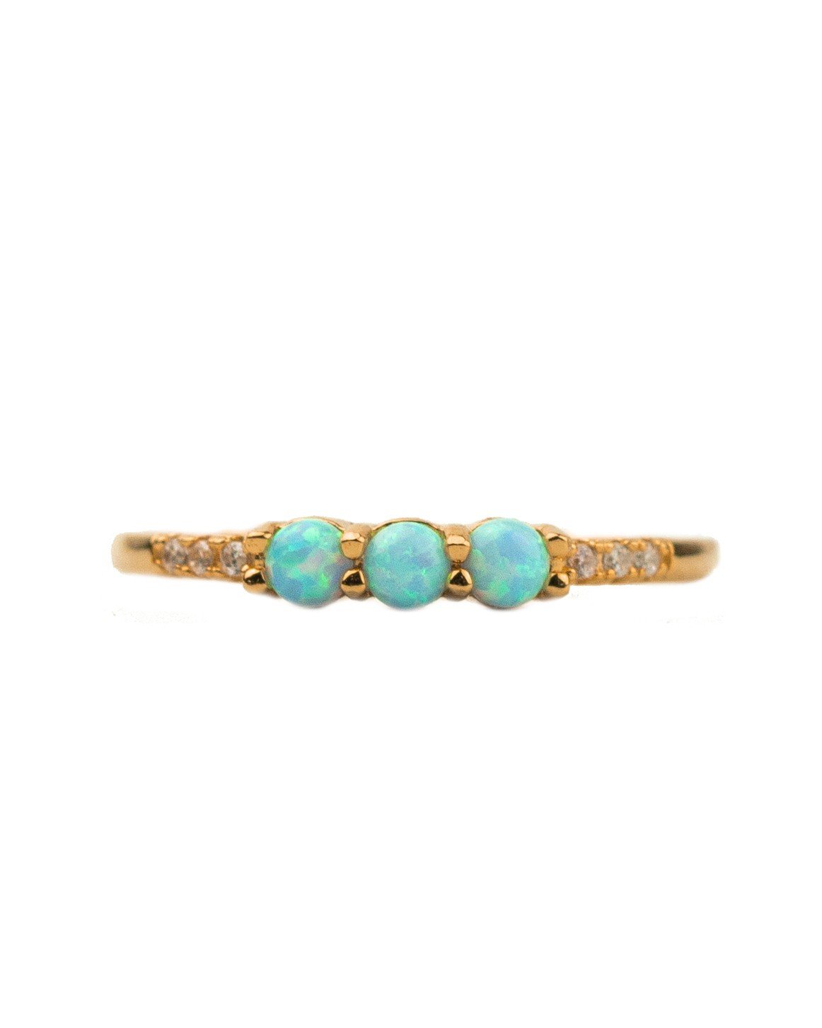 Ring with Three Blue Opals and Sparkling Cubic Zirconias