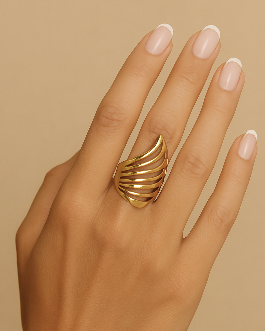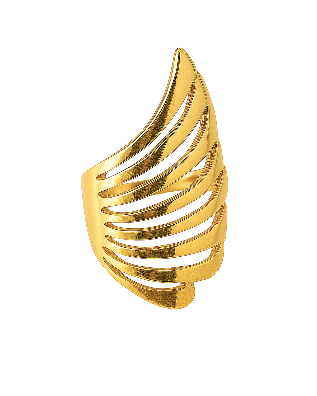 Anillo Ajustable en Forma de Ala en Plata de Ley 925 chapada en oro de 18 kilates