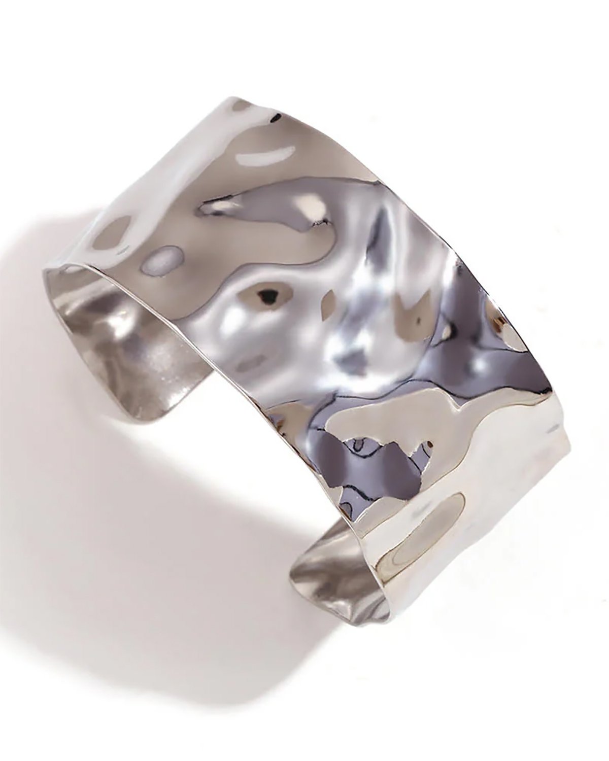 Maximalist Hammered Cuff - Rhodium Plated Stainless Steel