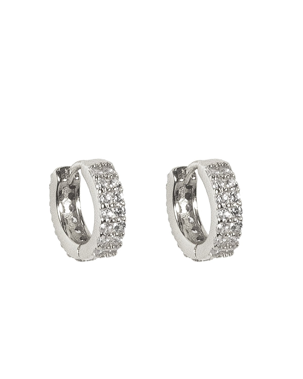 Boucles d'oreilles créoles avec une double rangée de zircons brillants en argent sterling 925.