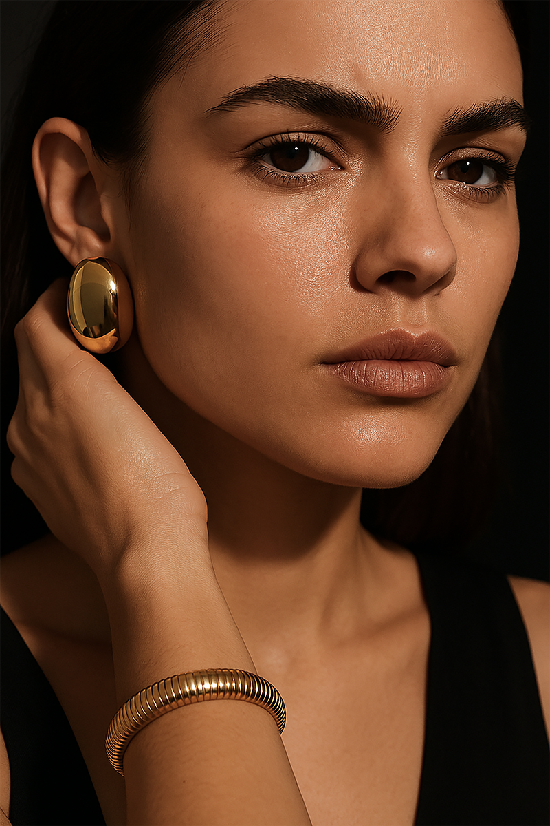 Démarquez-vous avec ces élégantes boucles d'oreilles au design sphérique, parfaites pour rehausser n'importe quel look. Fabriqués en acier inoxydable de haute qualité et plaqués or 18 carats, ils allient sophistication et durabilité, idéaux pour les occasions spéciales et pour un usage quotidien. Leur taille généreuse (33x16mm) et leur fermeture à pression assurent un ajustement confortable et sûr, tandis que leur finition hypoallergénique et résistante à l'eau les rend parfaites pour les peaux sensibles.