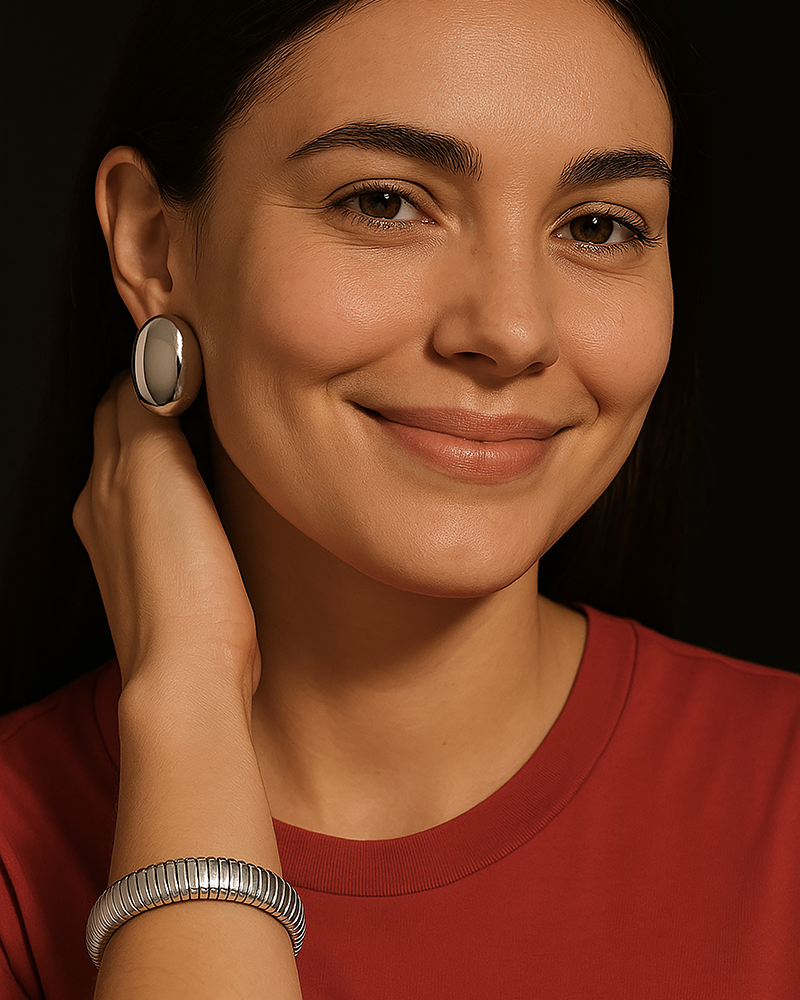 Démarquez-vous avec ces élégantes boucles d'oreilles au design sphérique, parfaites pour rehausser n'importe quel look. Fabriqués en acier inoxydable de haute qualité, ils allient sophistication et durabilité, idéaux pour les occasions spéciales et pour un usage quotidien. Leur taille généreuse (33x26mm) et leur fermeture à pression assurent un ajustement confortable et sûr, tandis que leur finition hypoallergénique et résistante à l'eau les rend parfaites pour les peaux sensibles.