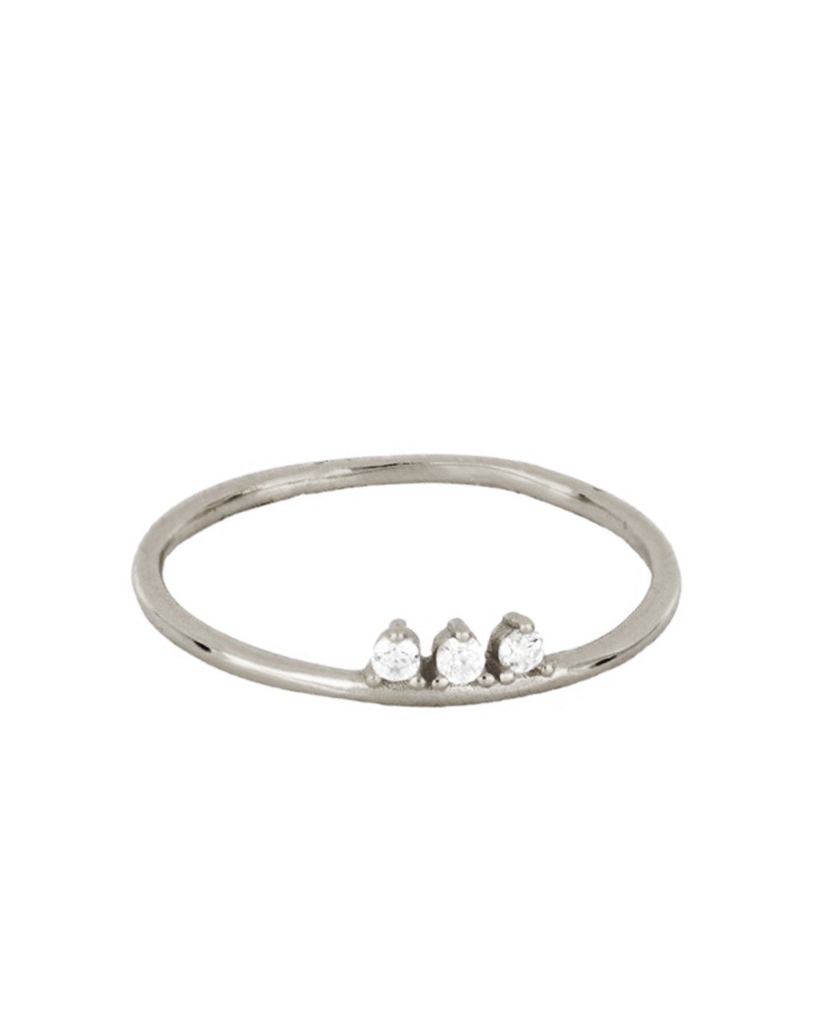 Cette bague élégante et minimaliste présente trois pierres de zircone cubique étincelantes soigneusement serties, lui conférant un design classique et sophistiqué. Fabriqué en argent sterling 925, il est parfait pour un usage quotidien ou pour compléter des looks spéciaux. Sa conception polyvalente lui permet d'être facilement combiné avec d'autres bagues.