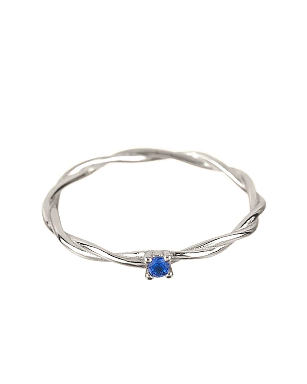 Anillo Solitario con Banda Trenzada y Piedra de Zirconita Cúbica azul en Plata de Ley 925