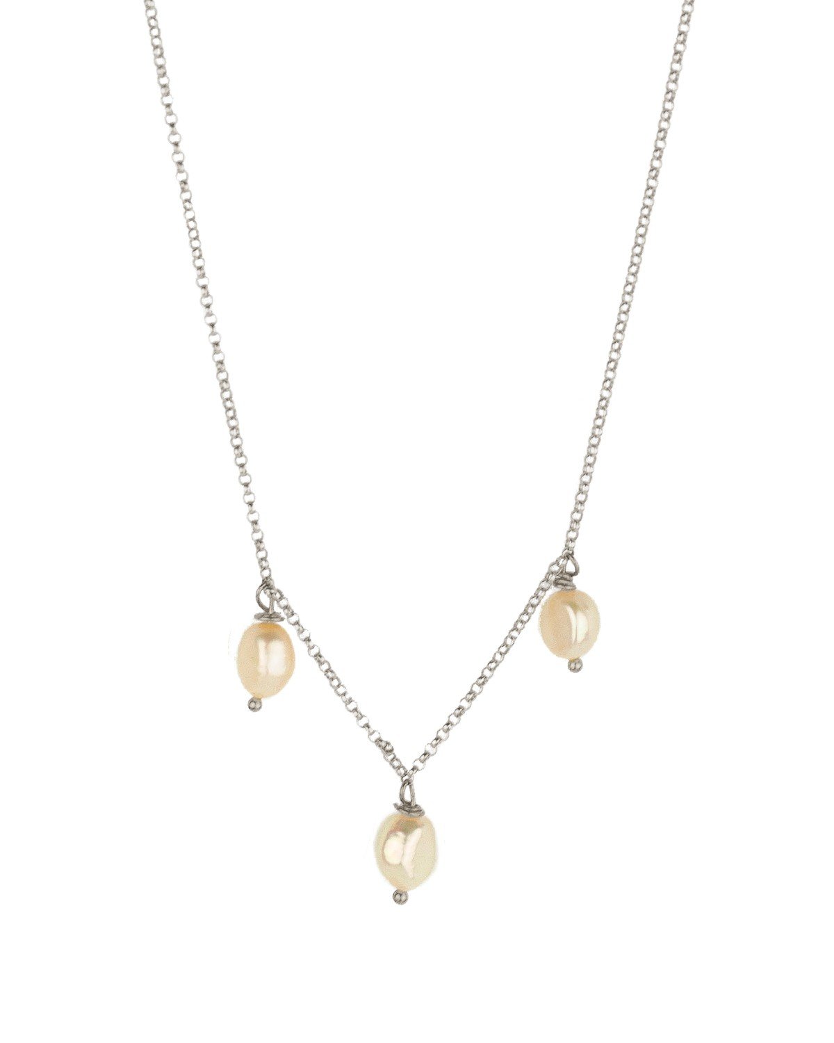 Este collar minimalista combina tres perlas naturalesen formas orgánicas con la pureza de la plata de ley 925. Cada pieza de nácar, con sus irisaciones únicas, captura la luz de manera diferente. Elige entre tres largos para adaptarlo a tu estilo: