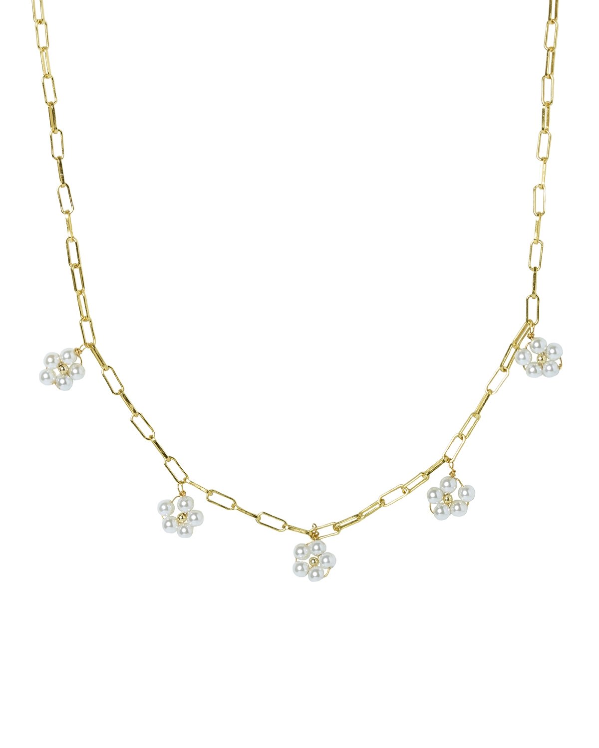 Collar de Cadena Cuadrada con Margaritas y Perlas - Elegancia Natural en Oro