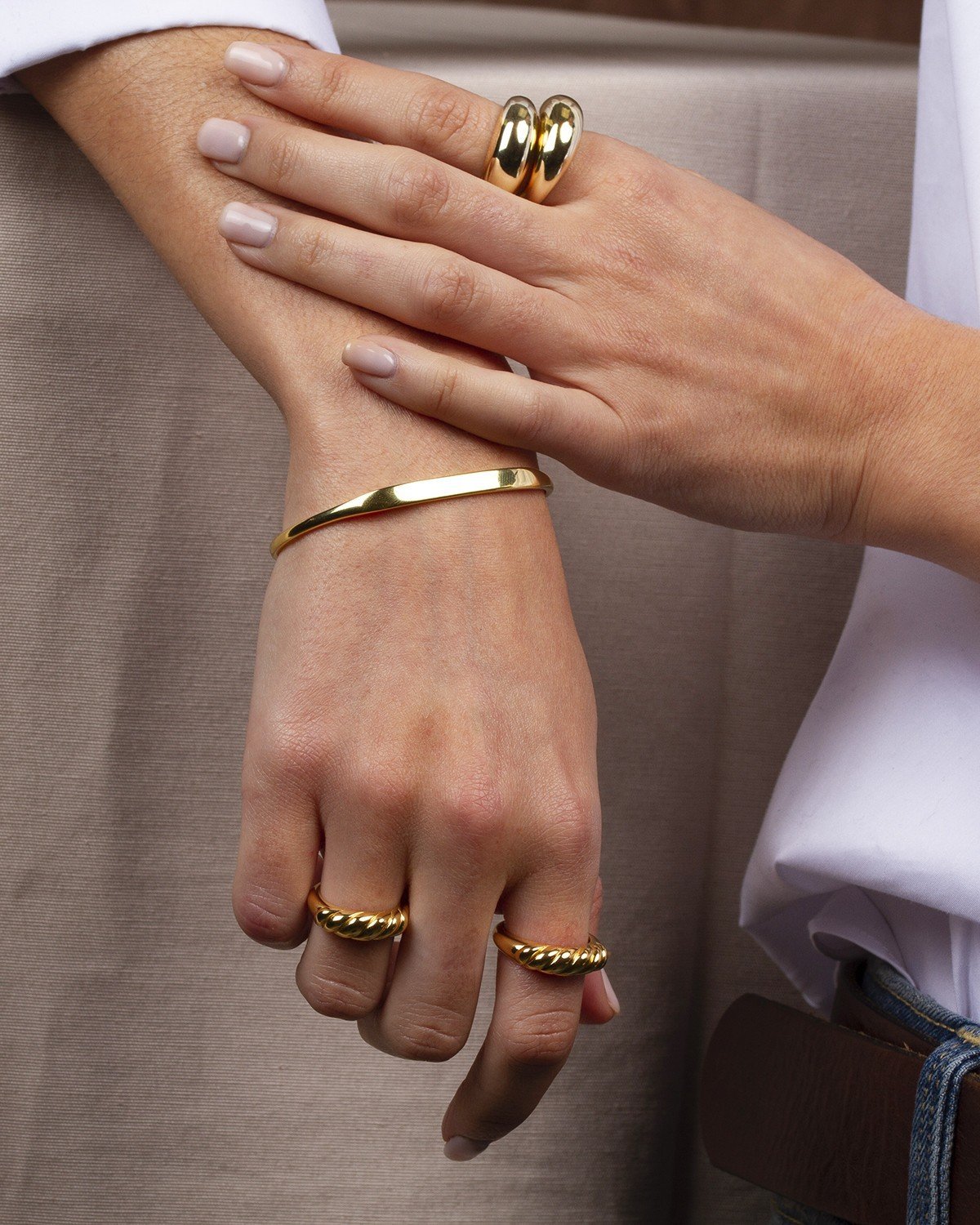 Diseño trenzado en forma de croissant, una tendencia de moda en joyería.