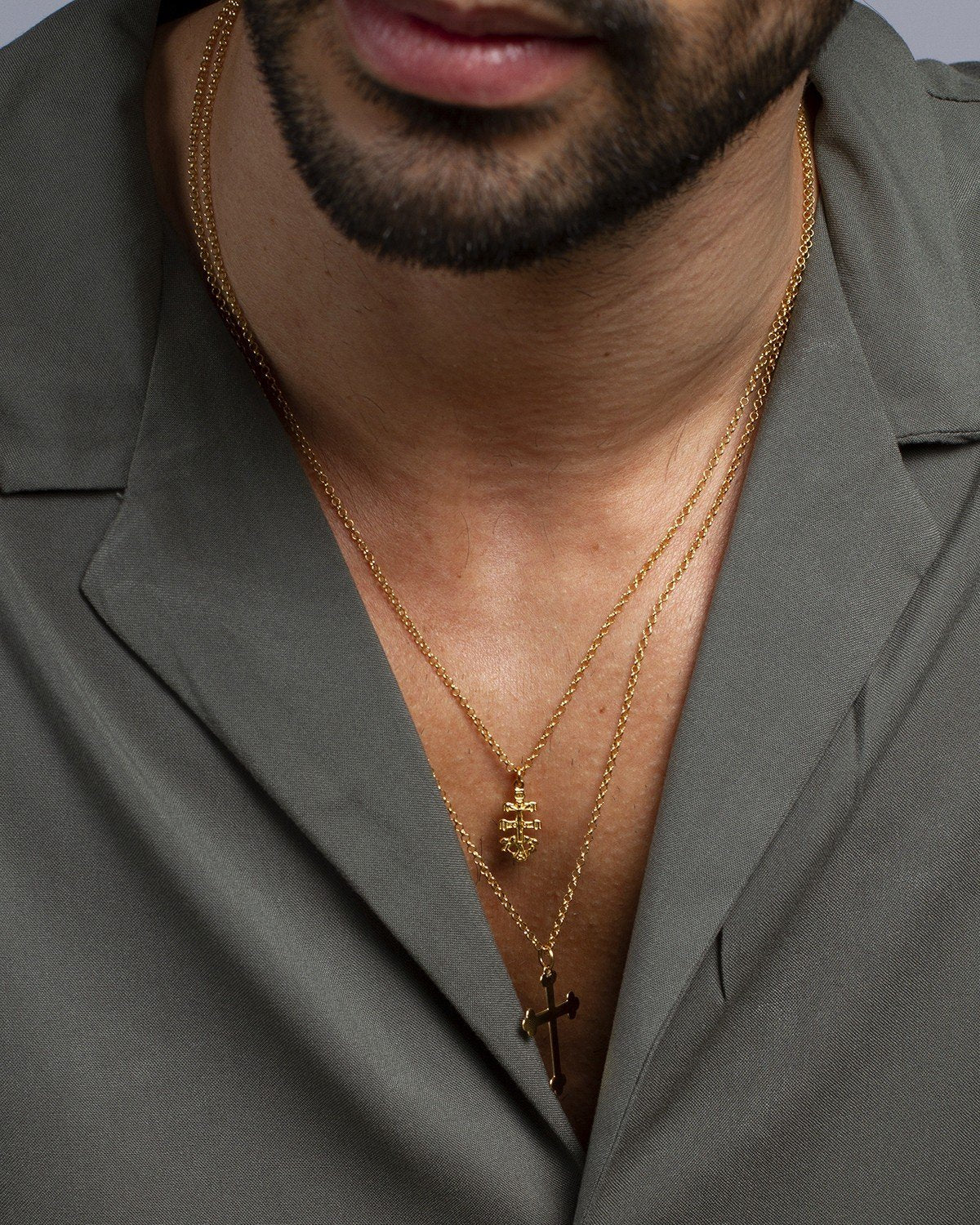 Caravaca gold es un collar de plata de ley 925 chapada en oro de 18 kilates con un colgante con la cruz de Caravaca. Esta cruz es símbolo de buena suerte y protección.