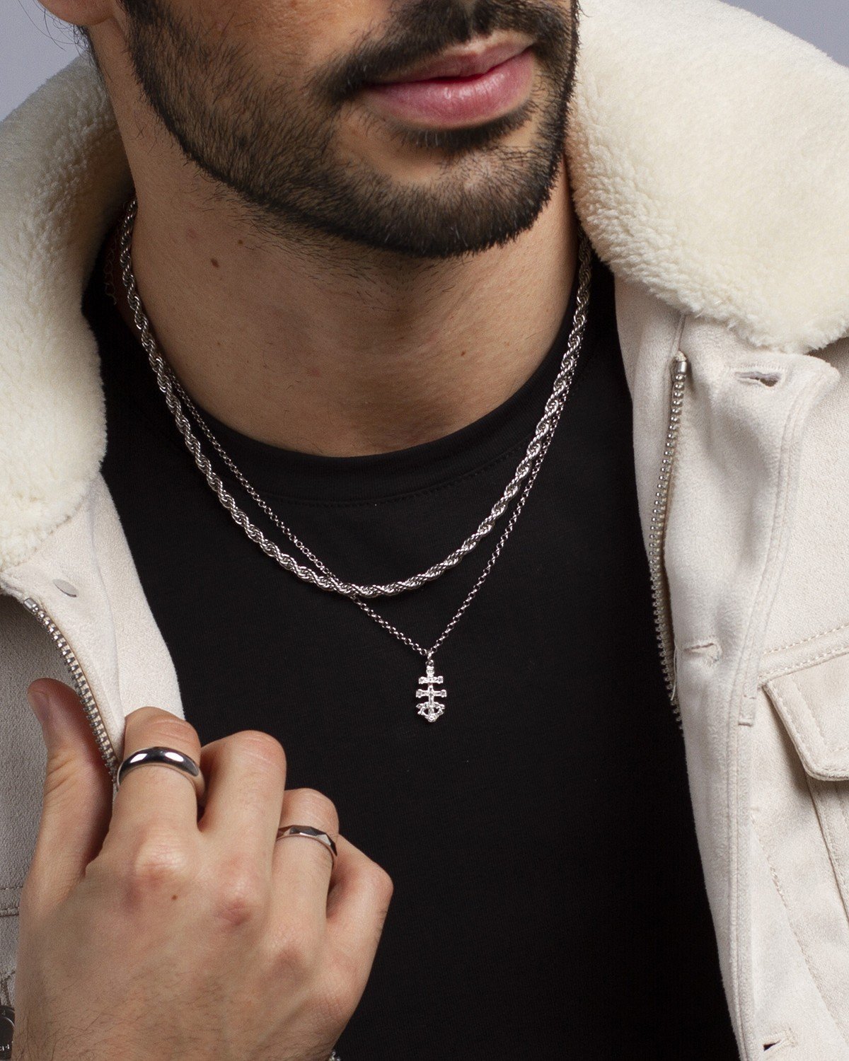 Caravaca silver es un collar de plata de ley 925 con un colgante con la cruz de Caravaca. Esta cruz es símbolo de buena suerte y protección.