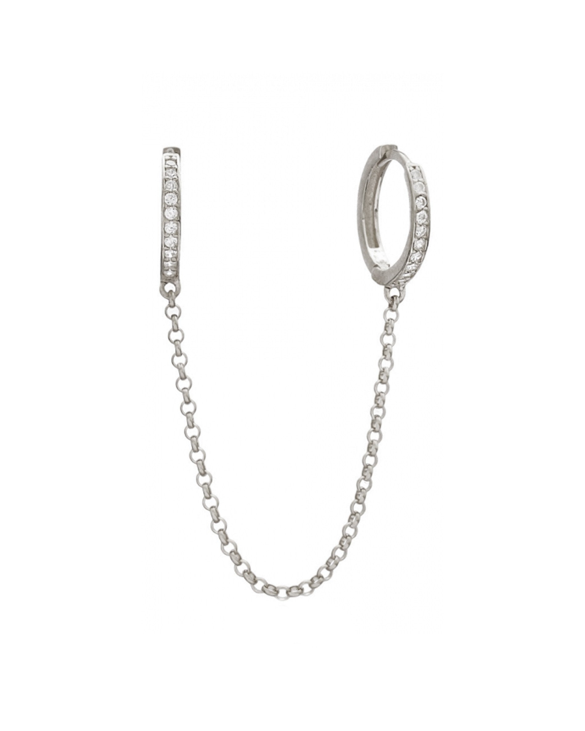 Diseño innovador: Dos aros conectados por una cadena con zirconitas brillantes.