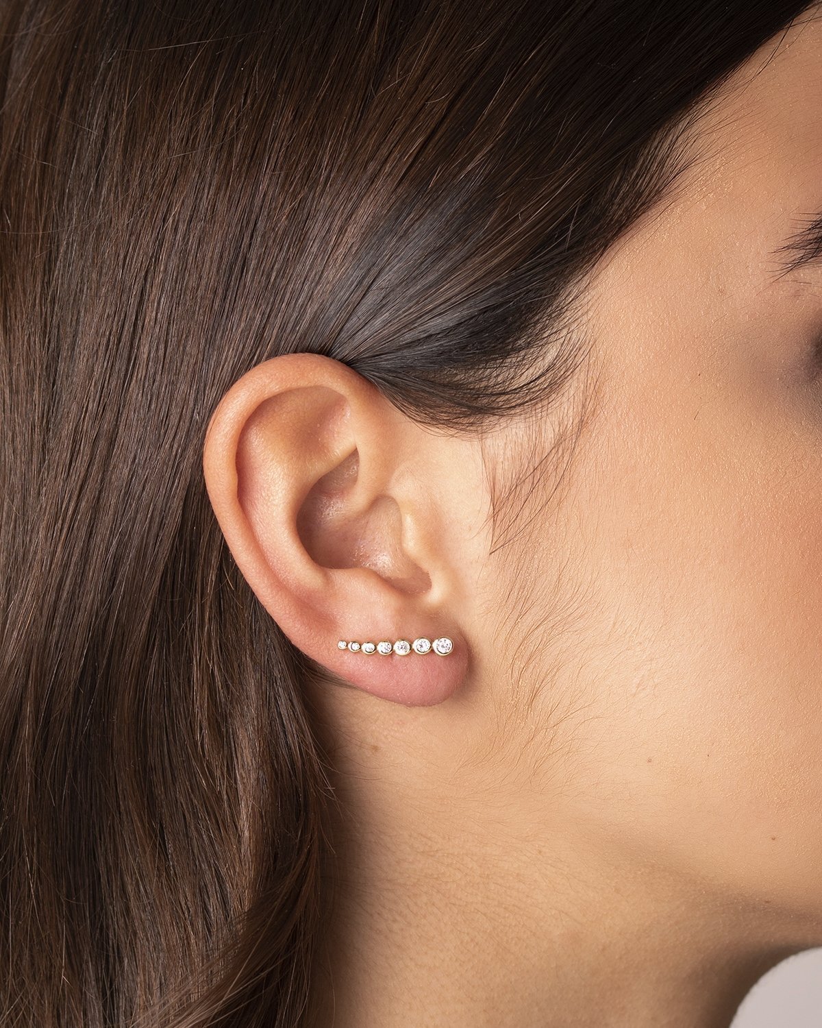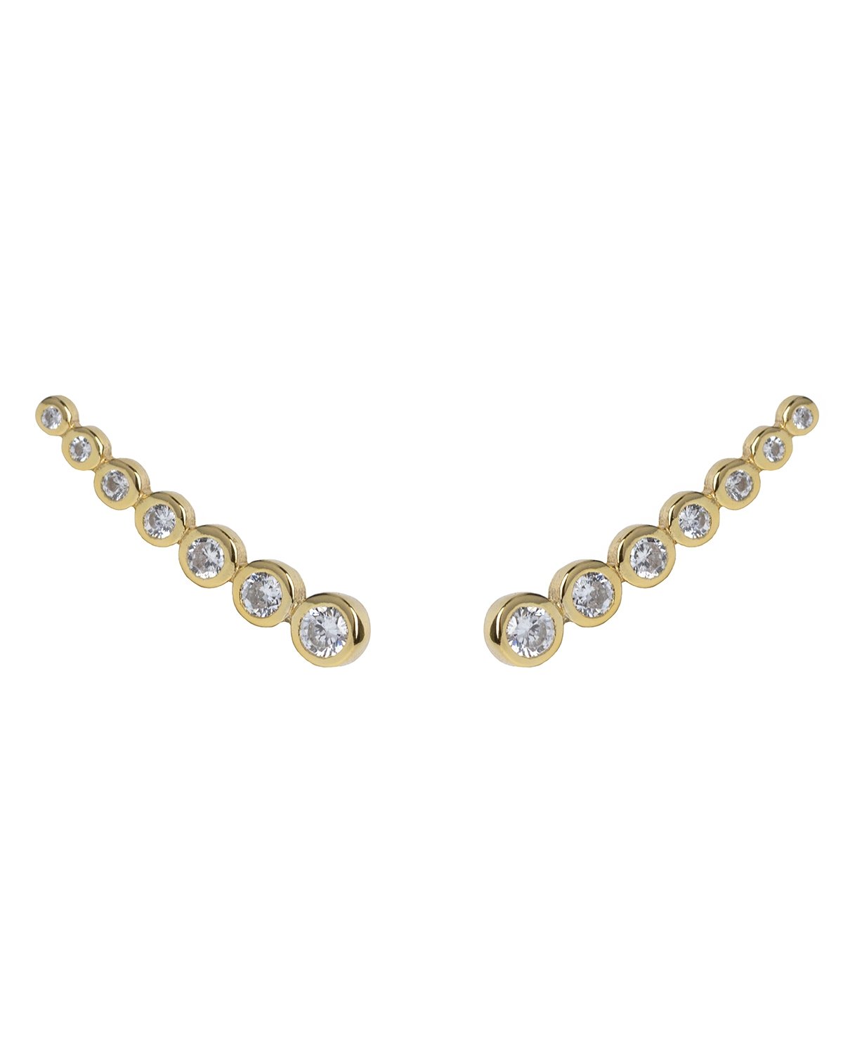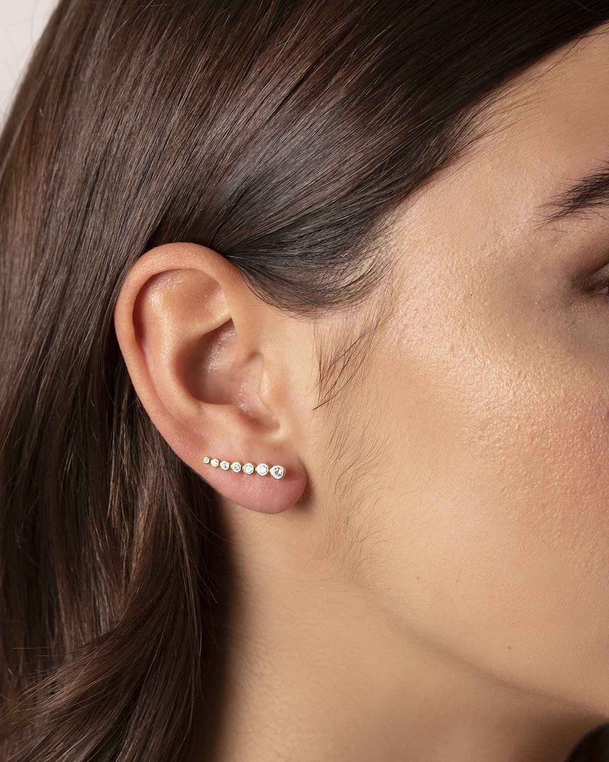 Pendientes trepadores con zirconitas cúbicas brillantes hechos en plata de ley 925 chapada en oro de 18 kilates.