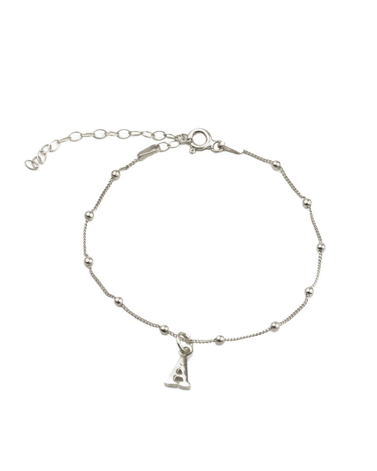 Pulsera de Cadena con Bolas y Colgante de Inicial en Plata 925
