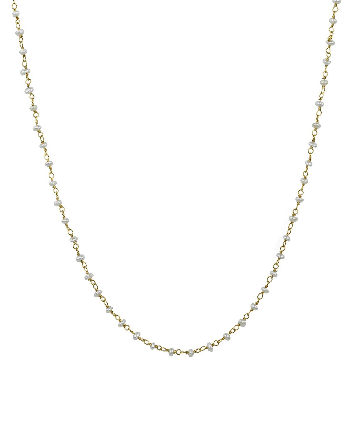 Este delicado collar estilo rosario combina perlas naturales con detalles en plata de ley 925 chapada en oro de 18 kilates, creando una pieza de elegancia atemporal. La cadena de 35 cm + extensión de 7 cm ofrece versatilidad para llevarlo como: