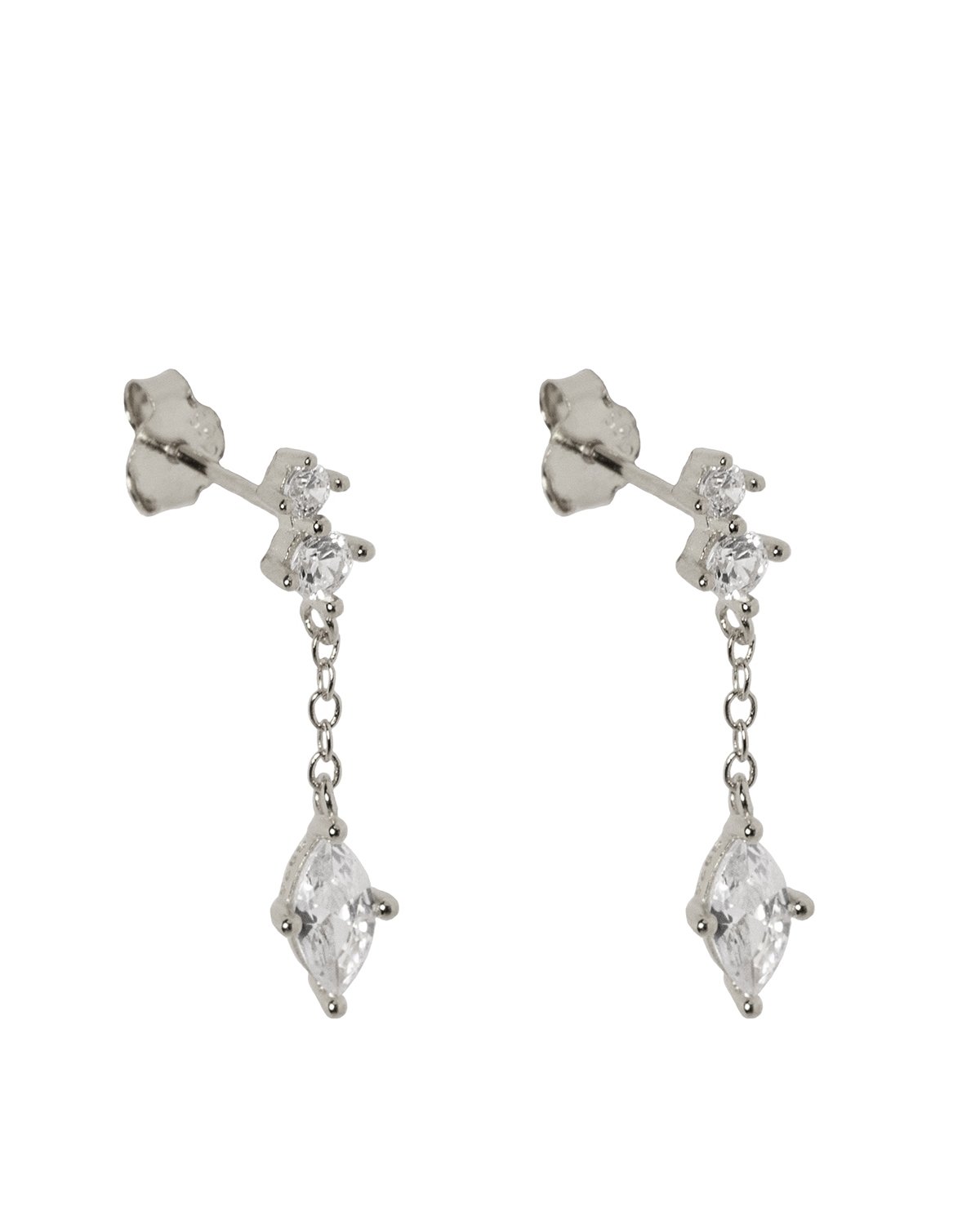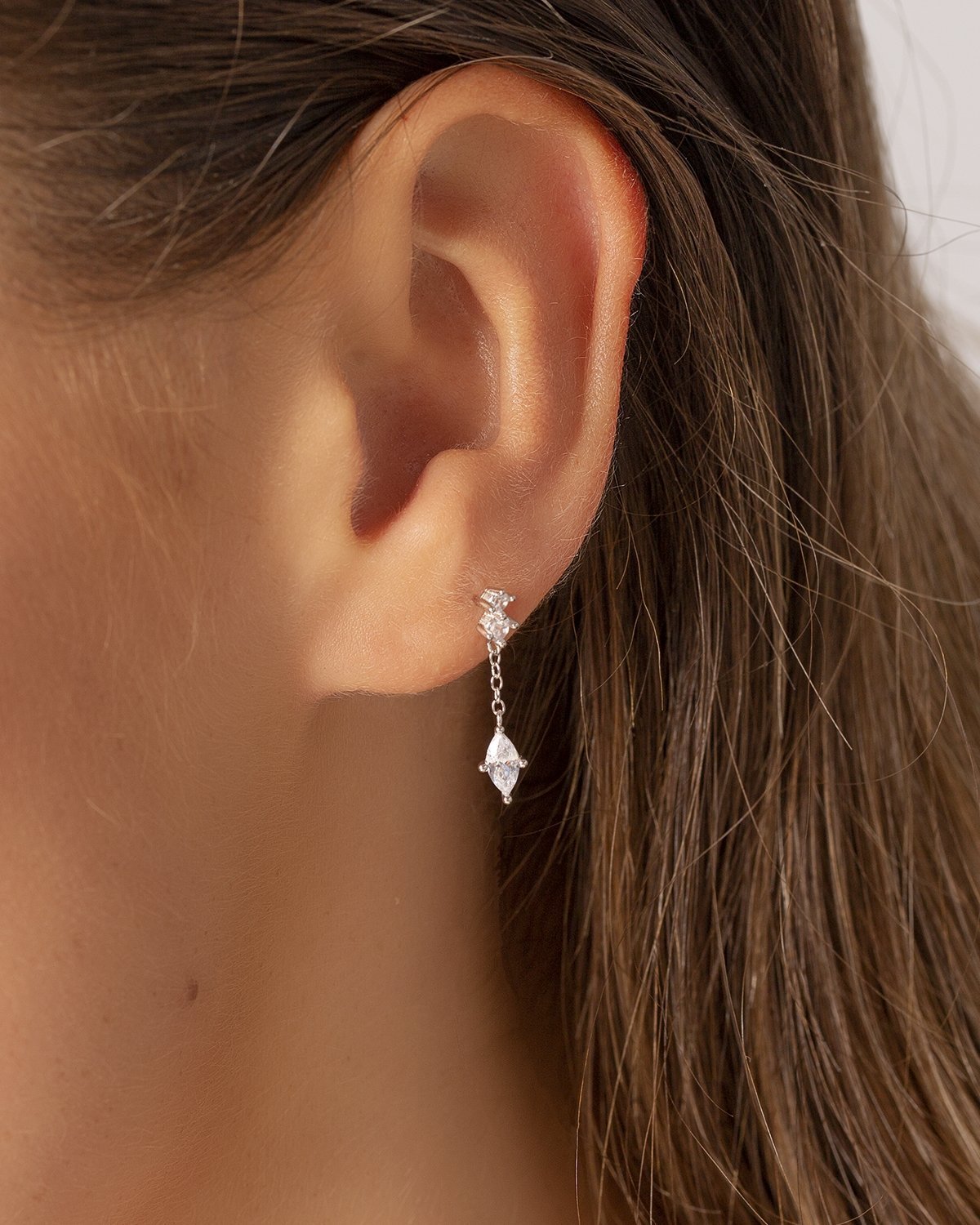 Pendientes con una cadena con zirconitas y un colgante hechos en plata de ley 925. Estos pendientes son perfectos para el día a día combinados con otros pendientes.