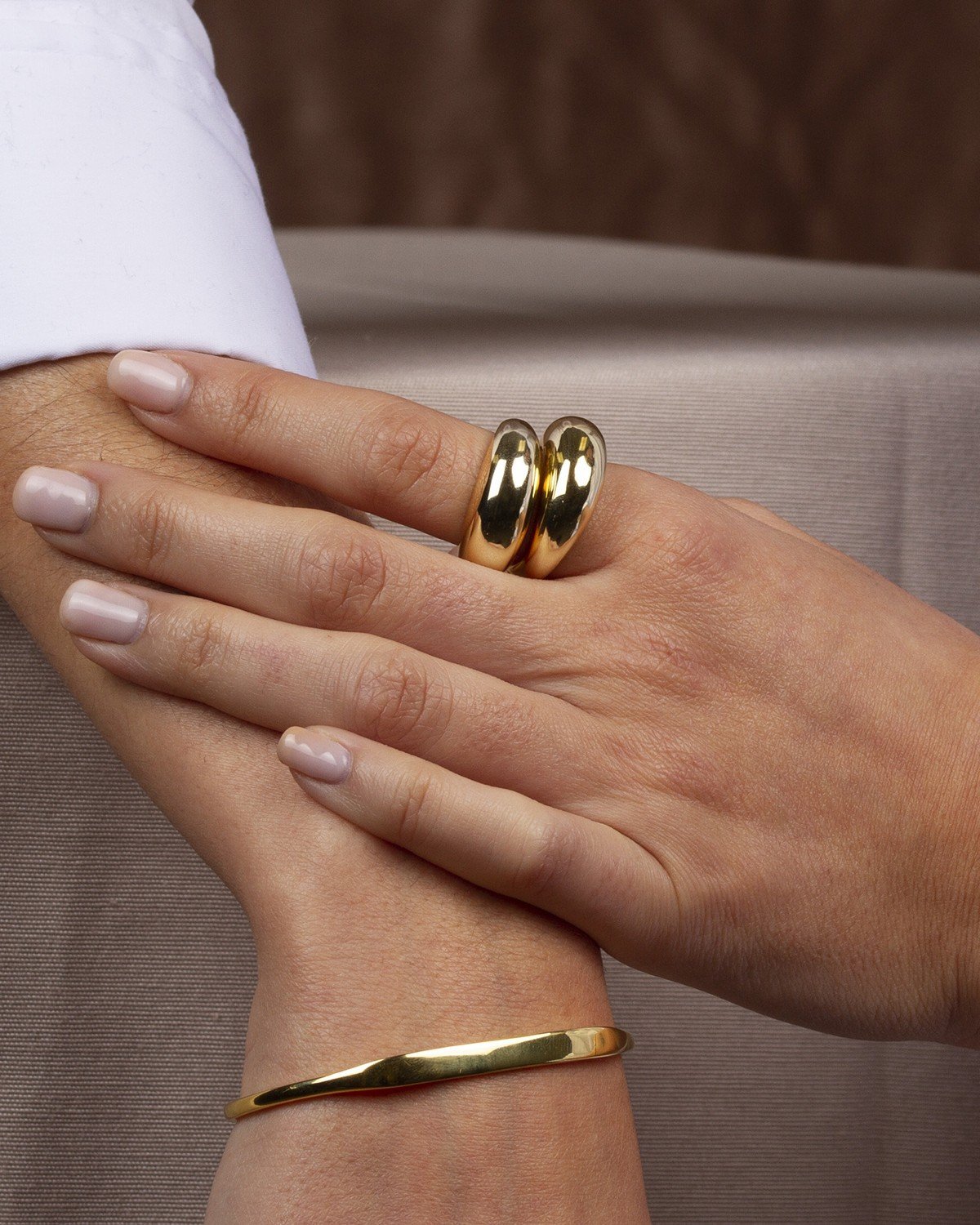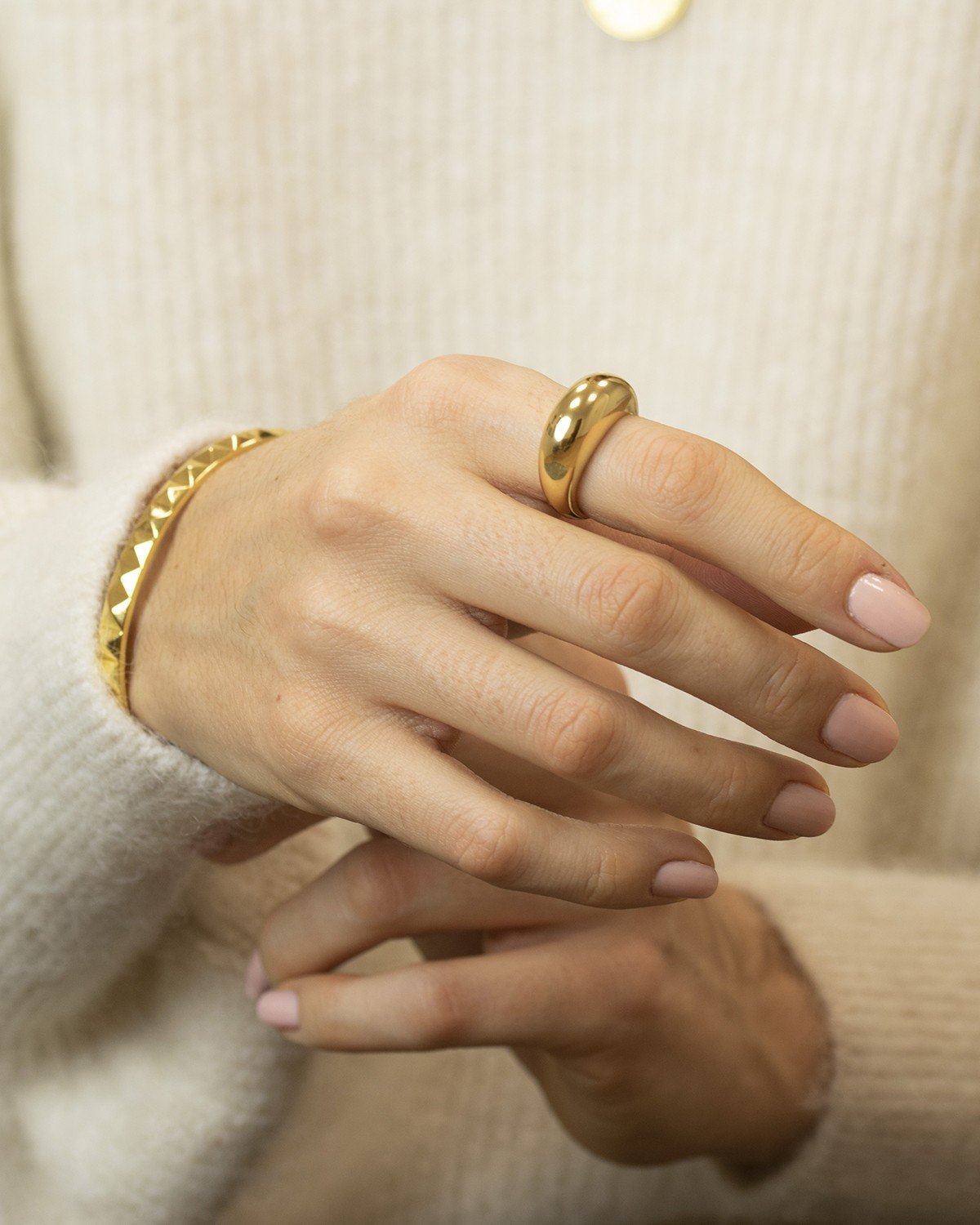 Este anillo minimalista de estilo cúpula tiene un diseño sencillo pero elegante, perfecto para cualquier ocasión. Hecho en plata de ley 925 chapada en oro de 18 kilates, es un accesorio unisex que se adapta tanto a estilos masculinos como femeninos. Su forma cúpula le da un toque moderno y sofisticado.