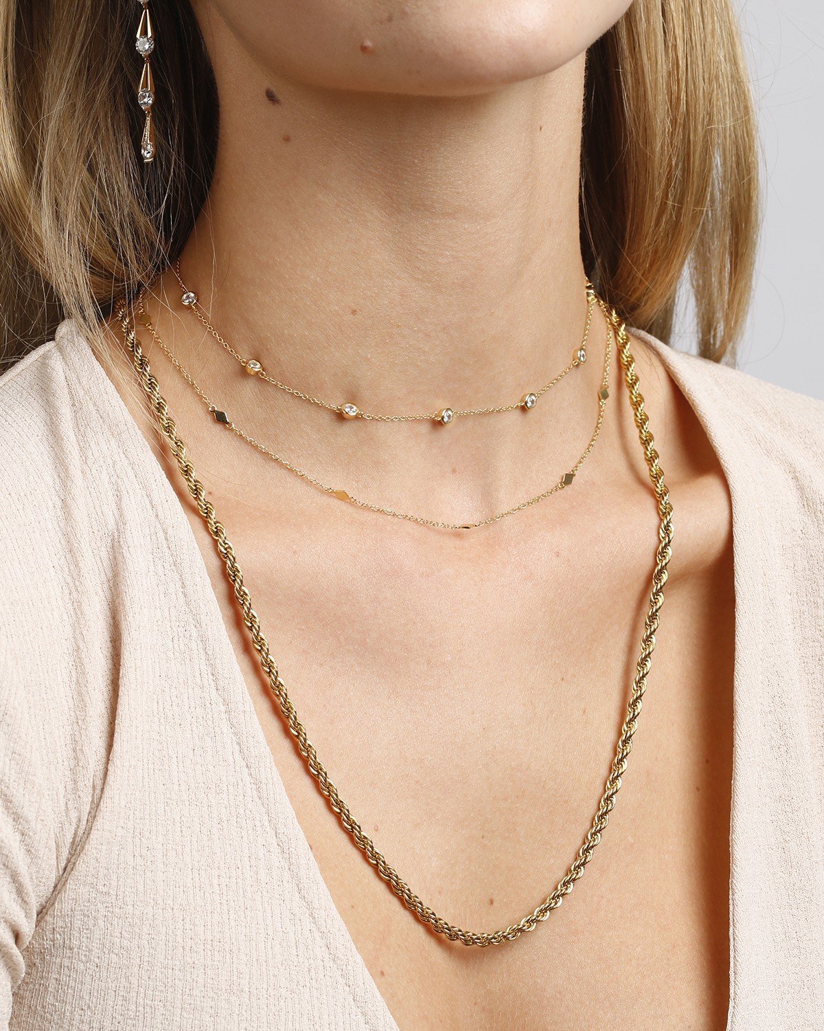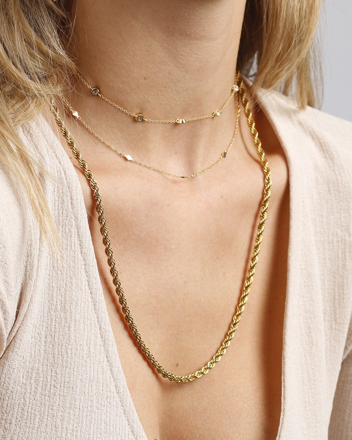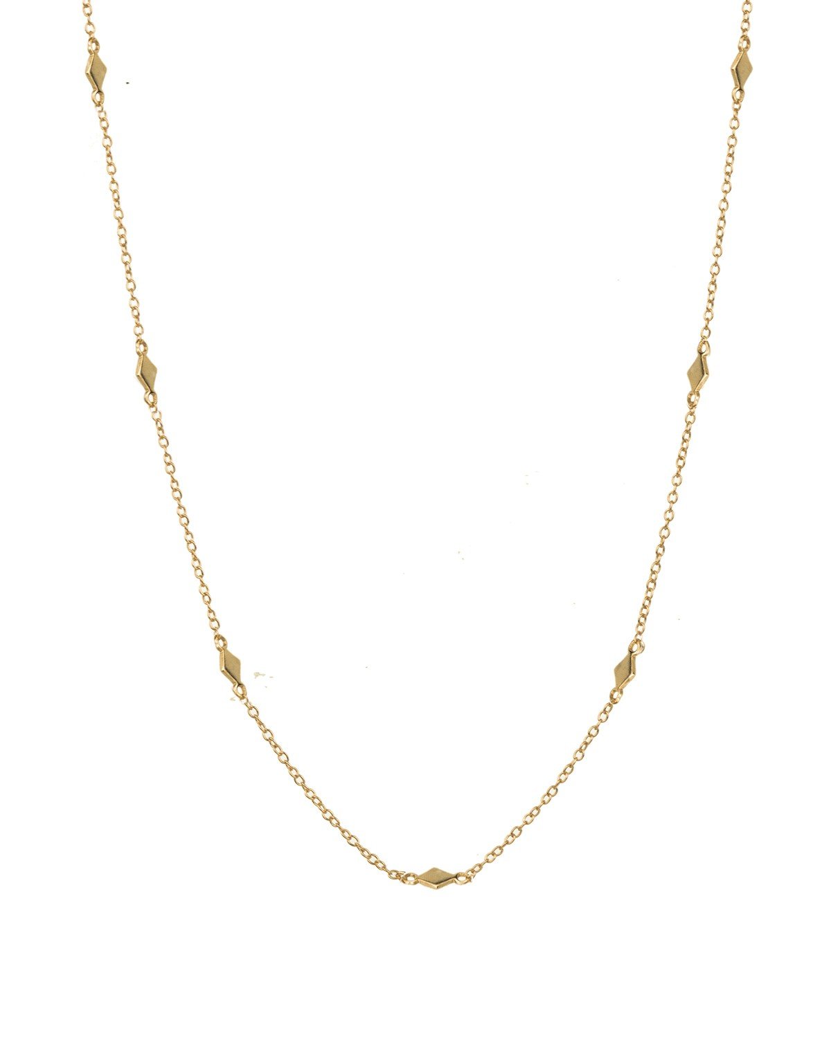 Un diseño geométrico y moderno, este collar está elaborado en plata de ley 925 chapada en oro de 18 kilates con pequeños rombos entrelazados que crean un efecto visual único. Perfecto para quienes buscan una pieza minimalista pero con carácter.