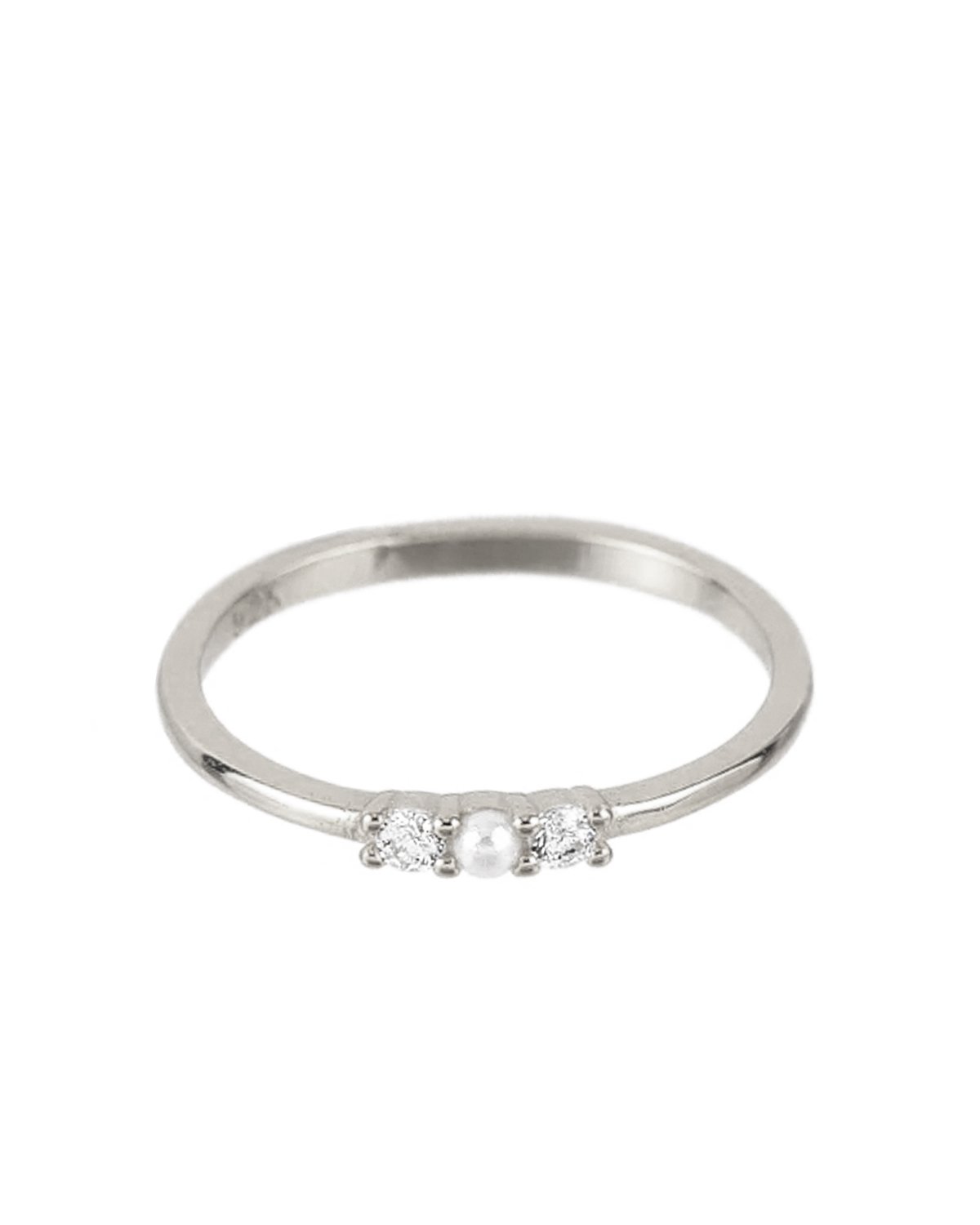 Este delicado anillo de plata de ley 925 cuenta con una perla central que irradia sofisticación, complementada por dos zirconitas cúbicas brillantes a cada lado. Su diseño simple pero refinado lo convierte en una pieza ideal para cualquier ocasión, desde looks diarios hasta eventos especiales.