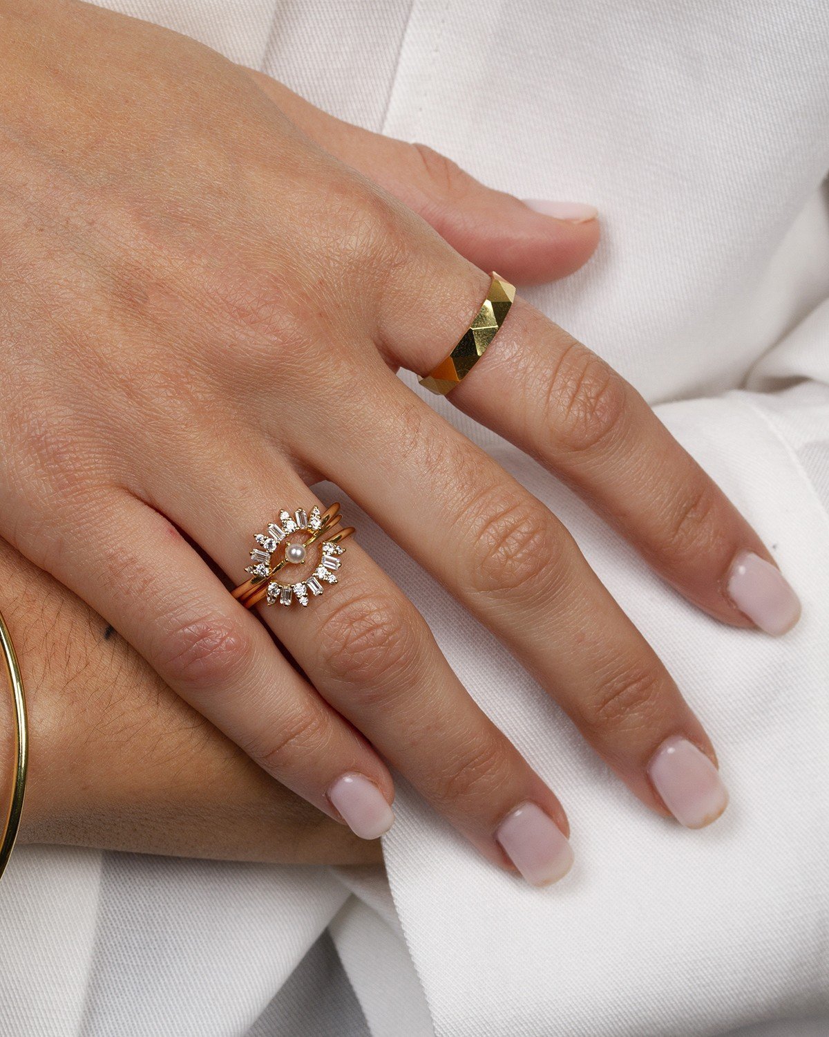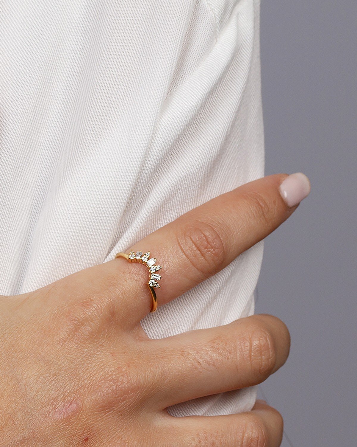 Este anillo con carisma es una pieza que no pasará desapercibido, perfecta para quienes buscan un diseño contemporáneo y minimalista. Con zirconitas cuidadosamente engastadas a mano en una base de plata de ley 925 chapada en oro de 18 kilates, este anillo se destaca por su simplicidad y elegancia. Ideal para combinar con otros anillos, ofrece un diseño cargado de estilo y sofisticación.