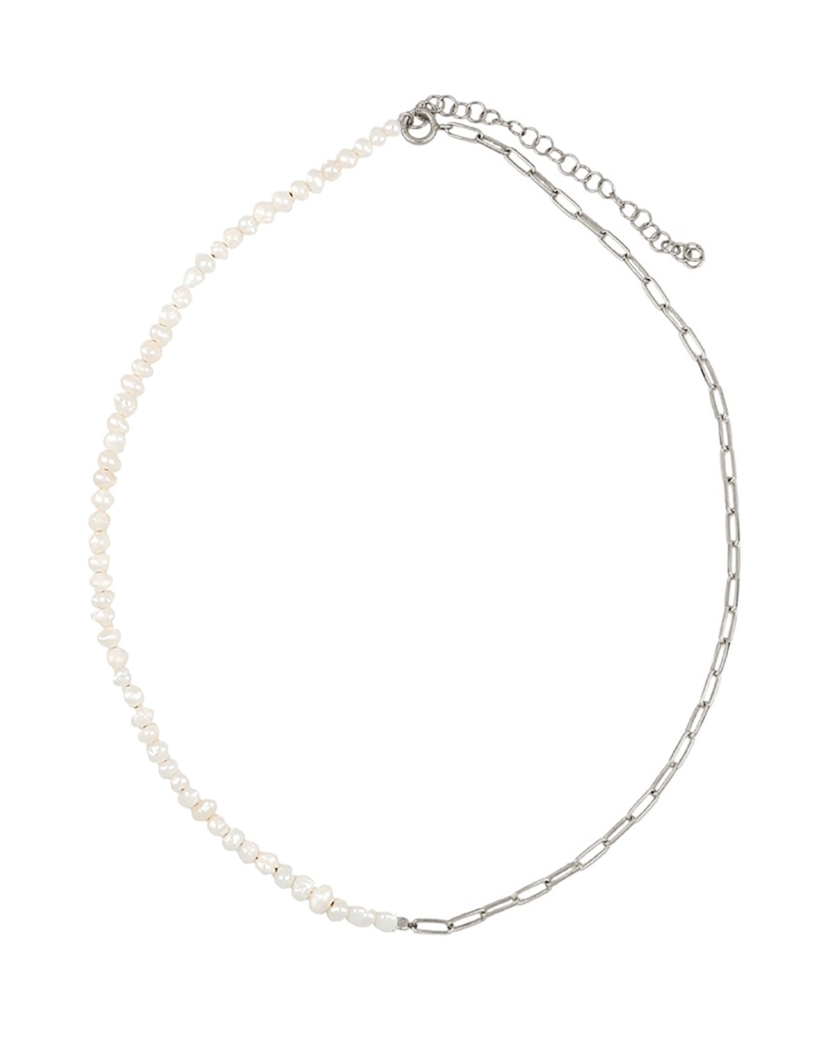 - Diseño dual: Mitad eslabones brillantes y mitad perlas naturales, creando un contraste sofisticado.