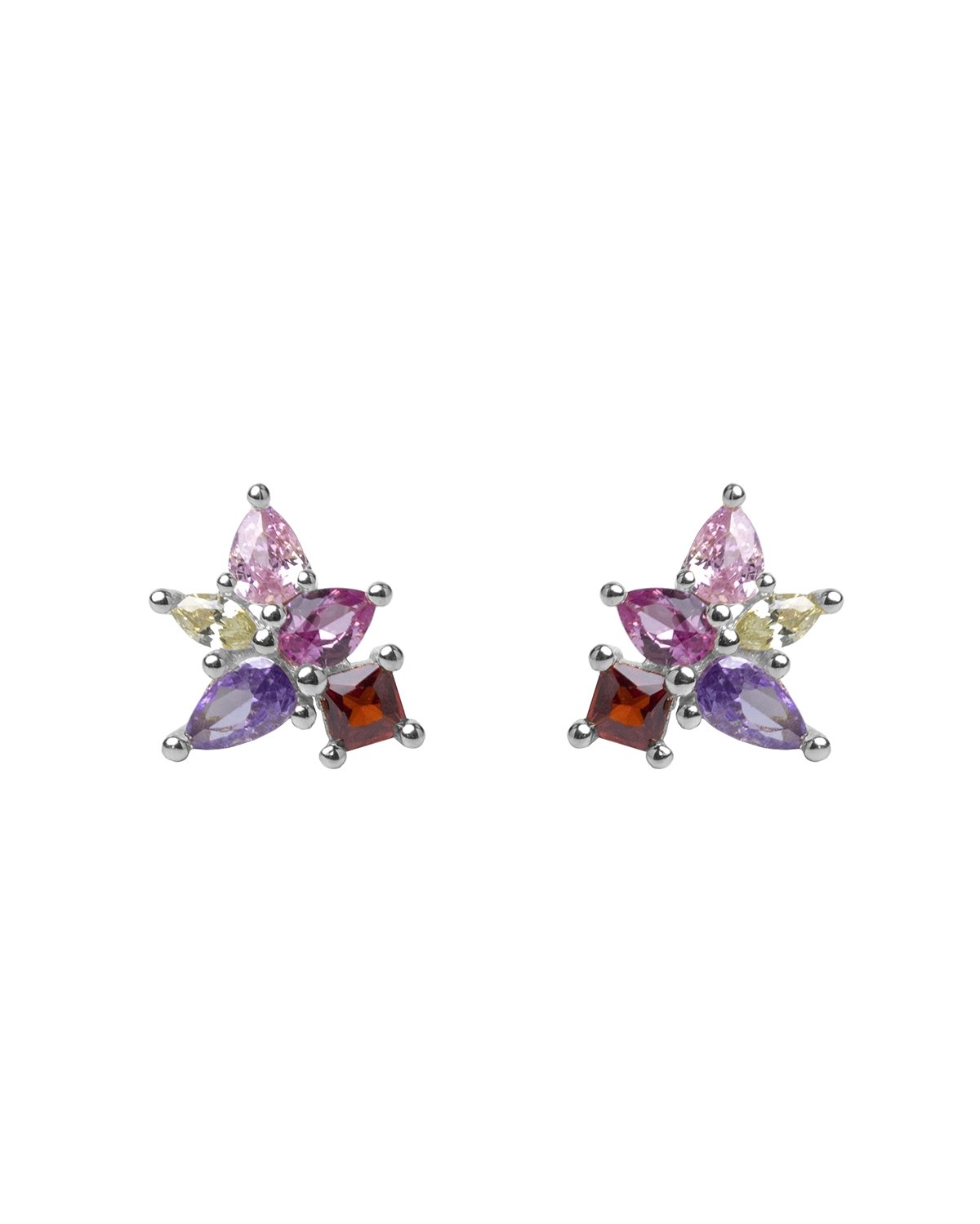 Pendientes de oro de estilo botón con varias piedras zirconitas multicolor hechos en plata de ley 925.
